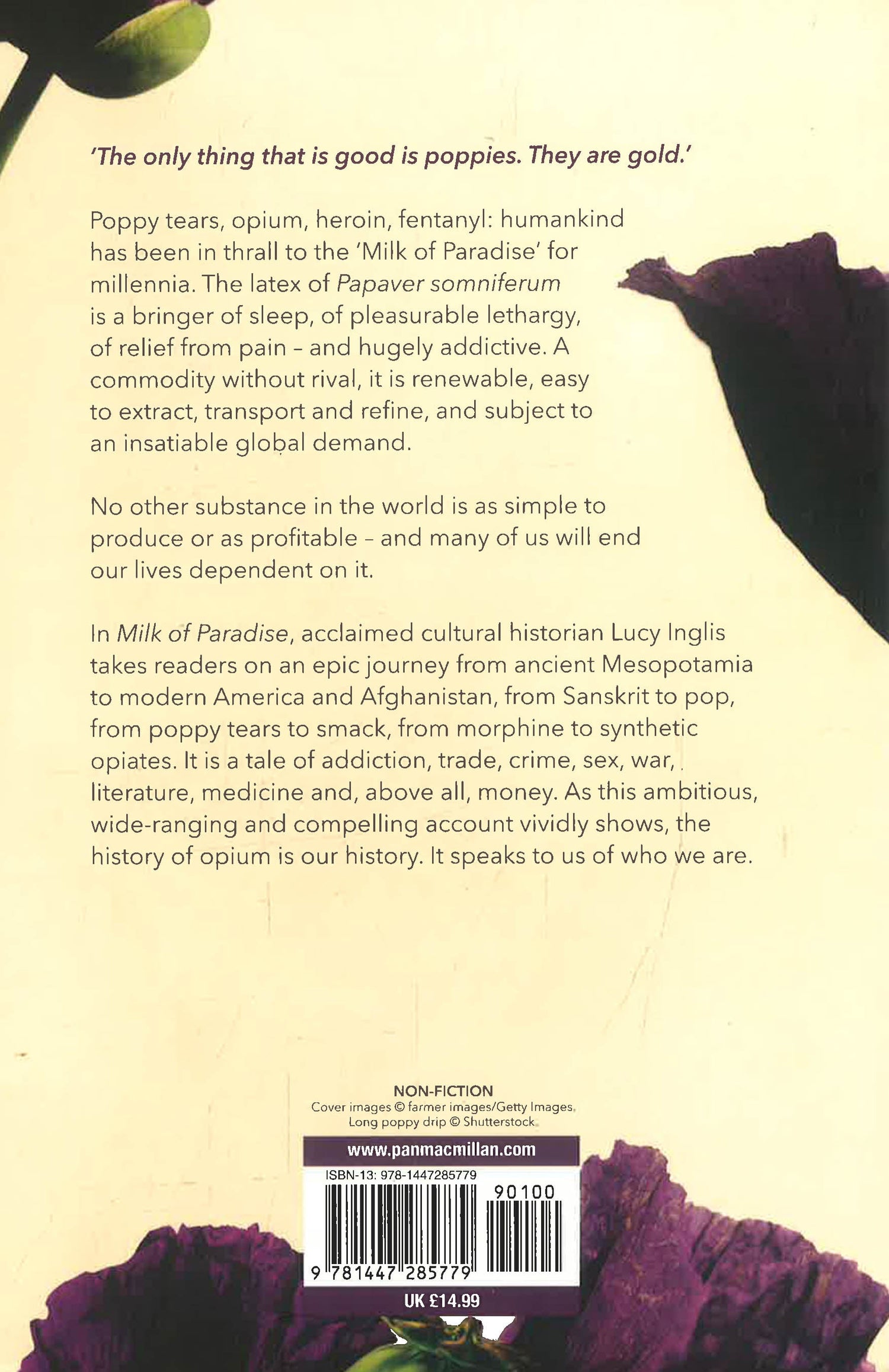 In Milk of Paradise, acclaimed cultural historian Lucy Inglis takes readers on an epic journey from ancient Mesopotamia to modern America and Afghanistan, from Sanskrit to pop, from poppy tears to smack, from morphine to today’s synthetic opiates. It is a tale of addiction, trade, crime, sex, war, literature, medicine and, above all, money. And, as this ambitious, wide-ranging and compelling account vividly shows, the history of opium is our history and it speaks to us of who we are.