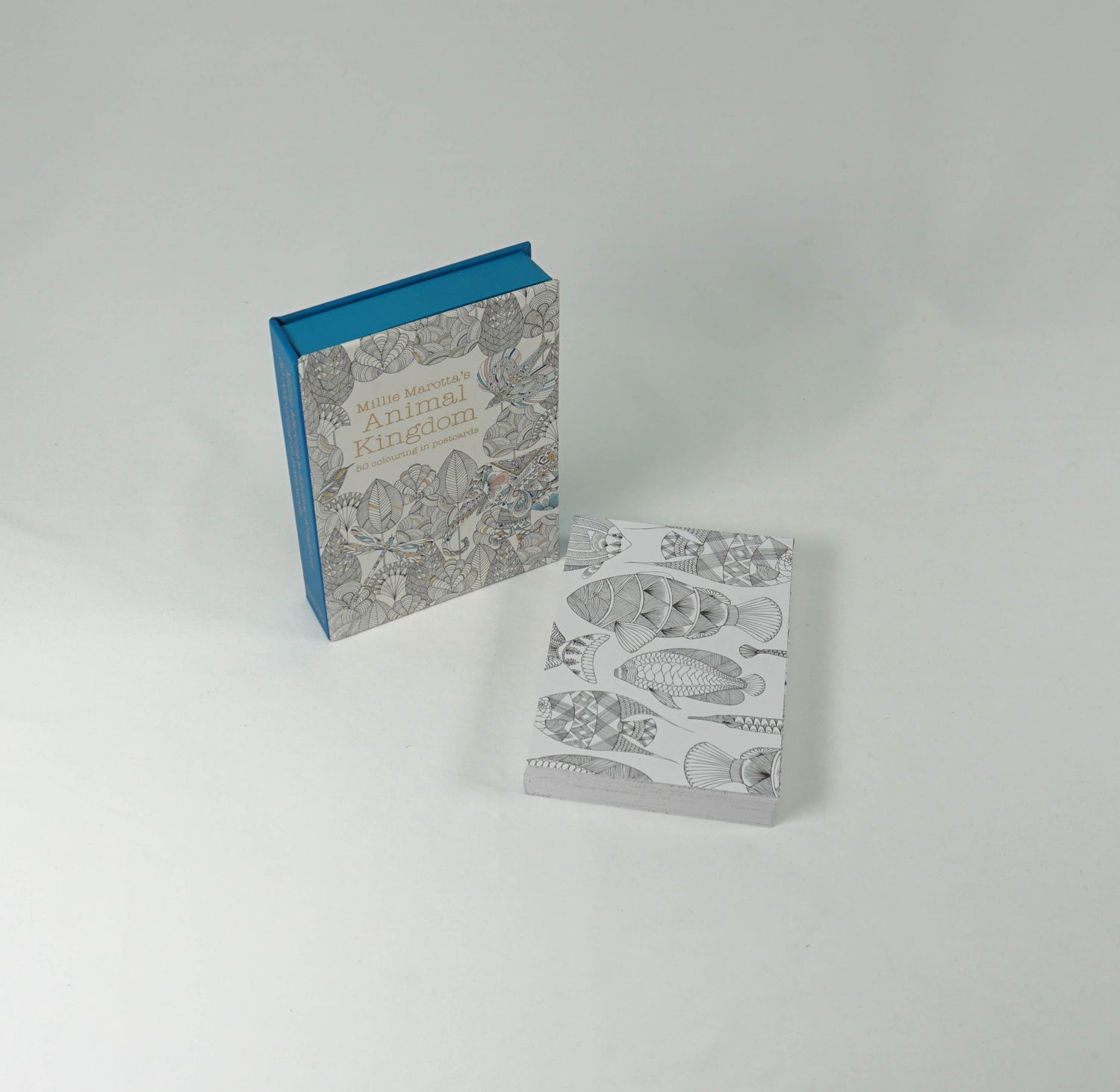 A lovely box containing 50 loose postcards of illustrations that feature in the bestselling Millie Marotta's Animal Kingdom. Everything from octopus to elephants, stags to swallows, rhinos to rabbits, these postcards can be sent just as they are to friends and family, coloured in or even framed and hung on walls. These bite-sized cards of beauty can be used for a range of things but will delight anyone who receives one.
