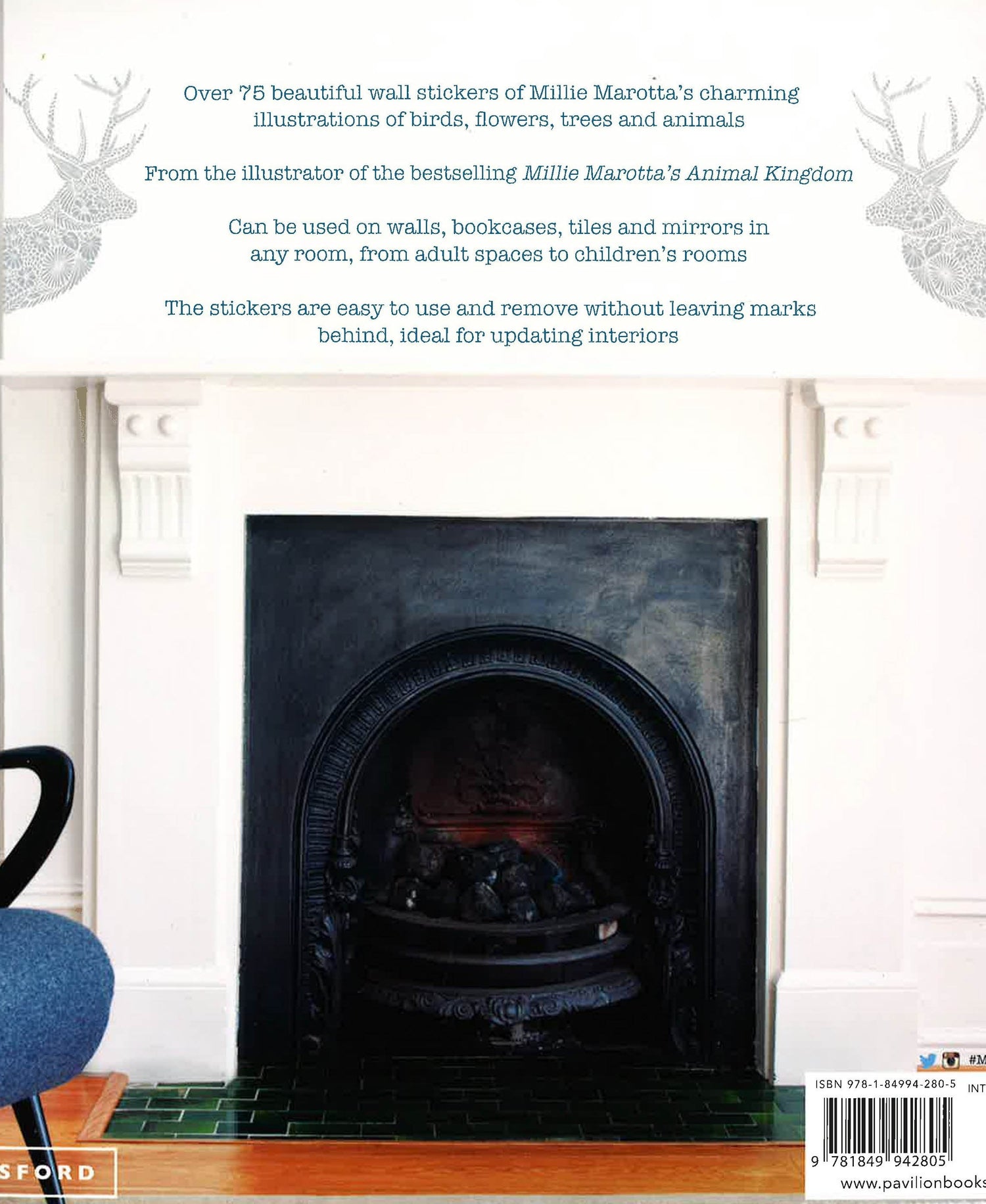Leading illustrator Millie Marotta has created a great collection of wall decoration stickers that could grace the walls of any home. Beautiful images, in Millie's inimitable style, can be added to walls above the sofa, mantelpiece, shelf, in hallways, on bookcases, stairs, tiles and mirrors. Millie's beautiful line work of flowers, birds, fish and foliage is loved around the world and will add charm to your home without any fuss or work. The stickers are easily removed from the book and stuck on the wall and will not leave a mark on the wall after removal. You can instantly get a sophisticated and consistent look for a room or whole home with these stickable works of art.