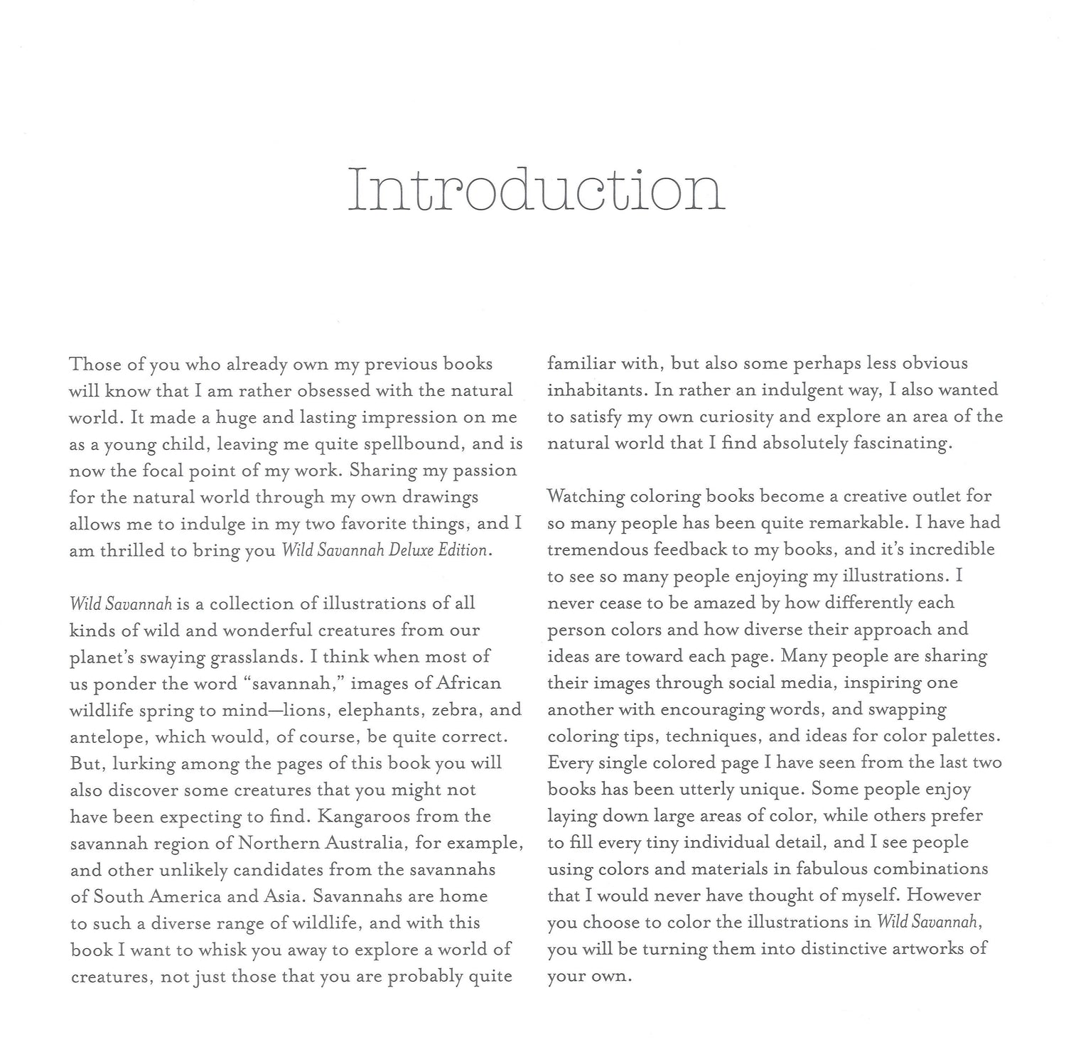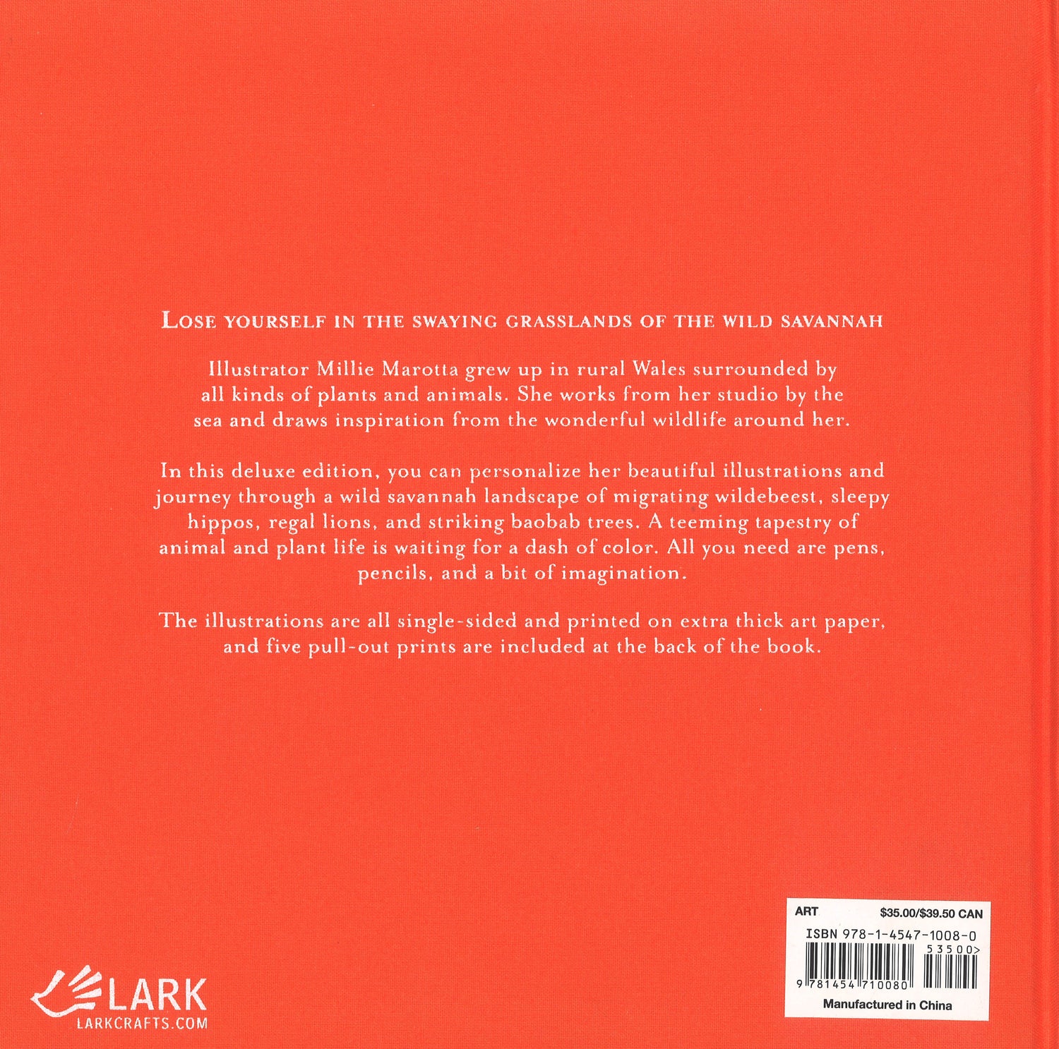 Millie Marotta is one of the most popular creators of adult coloring books--and this beautiful volume features stunningly sophisticated patterns inspired by the savannah. Her intricate black-and-white drawings capture a myriad of the flora and fauna found in that breathtaking landscape, including elephants, rhinos, zebras, and ostriches. The high-quality stock is perfect for color pencils, as well.