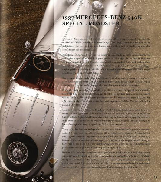 The allure of beautiful and rare cars is timeless, since the dawn of the automotive age people have aspired to own and drive the fastest, the coolest, and the most expensive cars. Million Dollar Classics-The World's Most Expensive Cars is a lavish photographic collection of some of the most sought after models that have been made available for auction in recent years. All of the cars featured in this elegant book attained auction prices upwards of $1,000,000, making them the most desired cars in the world, as well as the most expensive. Captured on camera by specialist automobile photographer Simon Clay, the stunning images in this book are accompanied by an informative text that gives the reader the specs, history and other fascinating details of these dream vehicles. This book is perfect for any automobile lover, or collector and includes vehicles created by Mercedes-Benz, Bugatti, Alfa Romeo, Ferrari, Jaguar, Maserati, and Aston Martin.