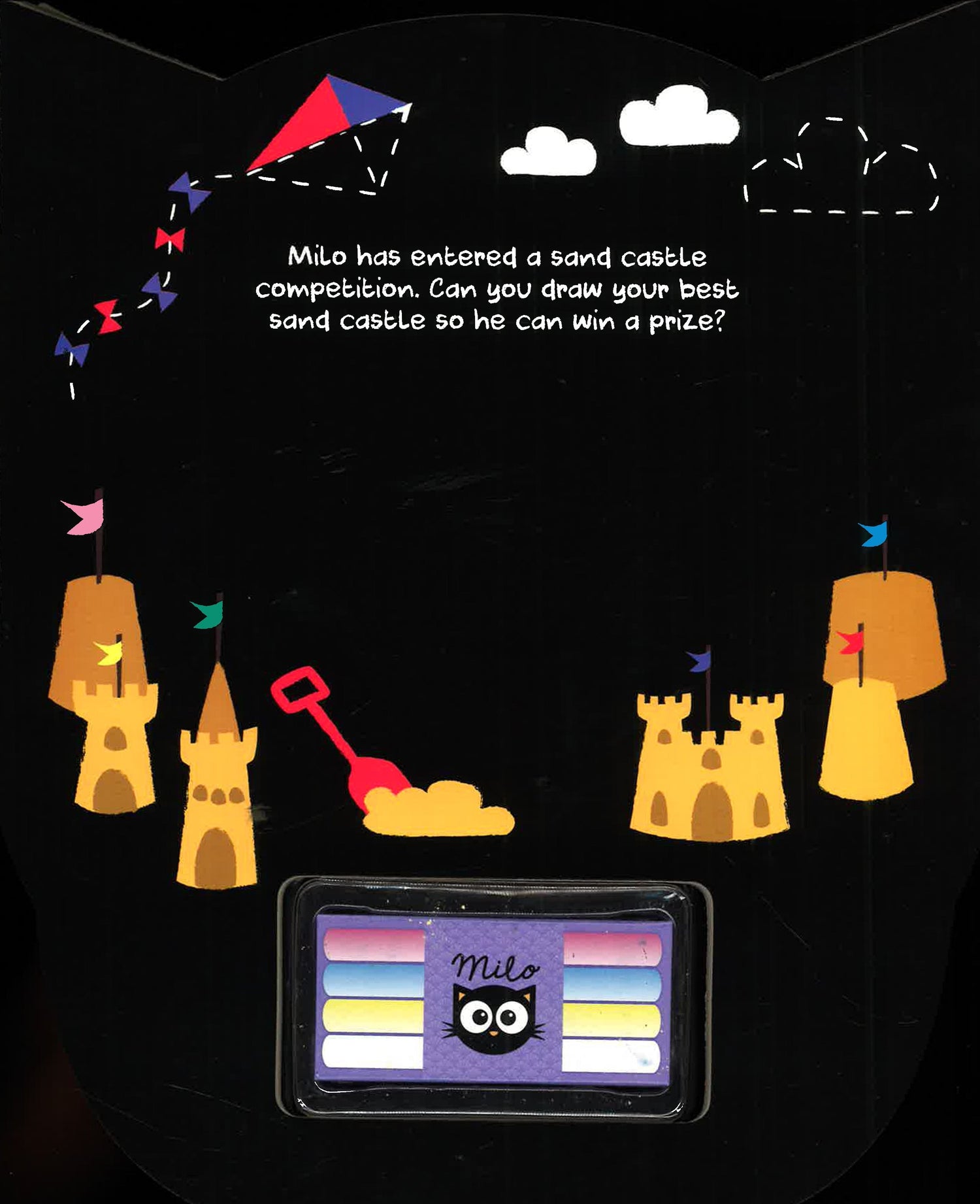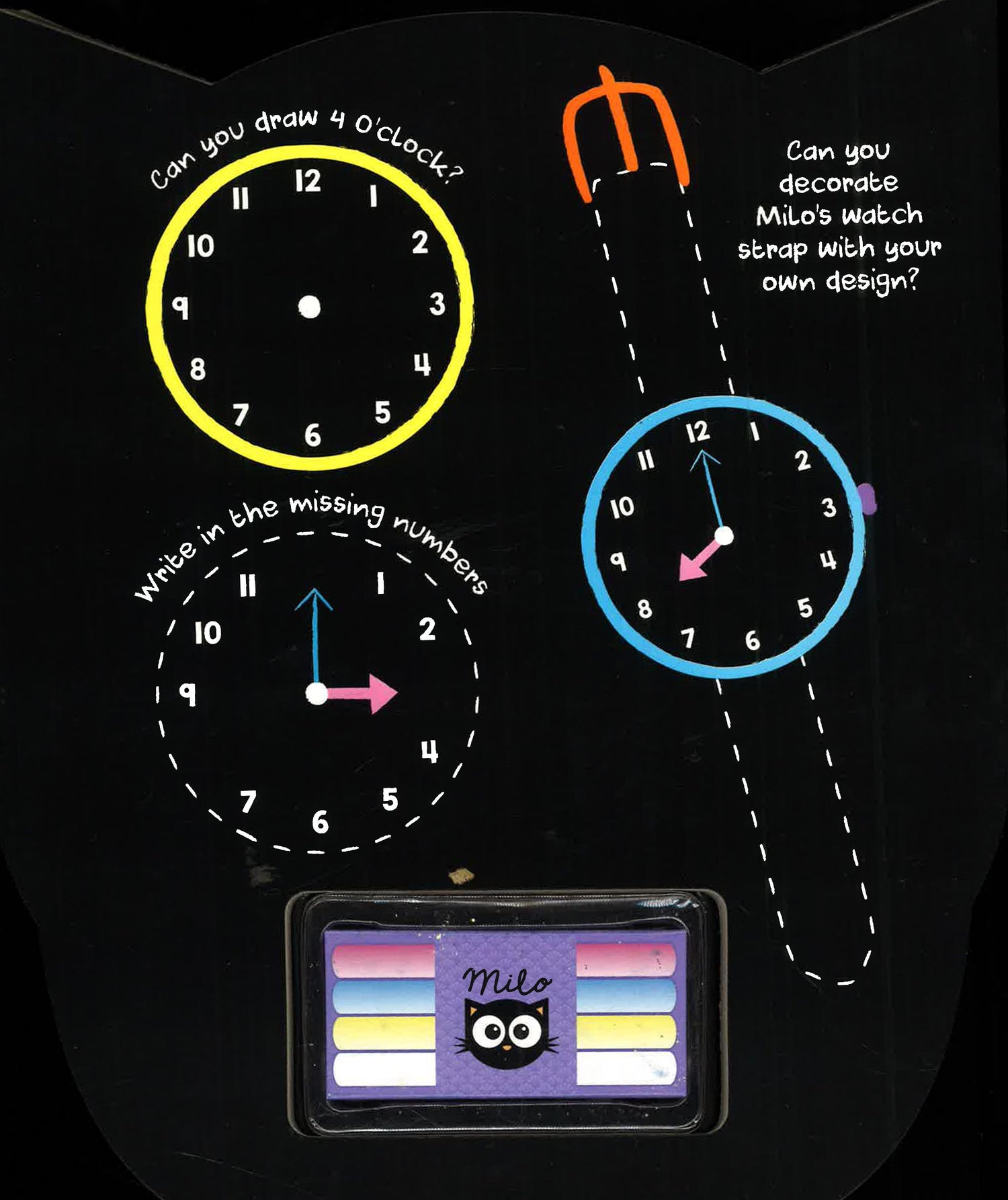 Milo's Chalk Activity Book is a great way for young kids to learn to draw, tell the time, write numbers, letters and much more! The set includes four coloured chalk sticks and a handy cloth, so you can wipe-clean and play again!