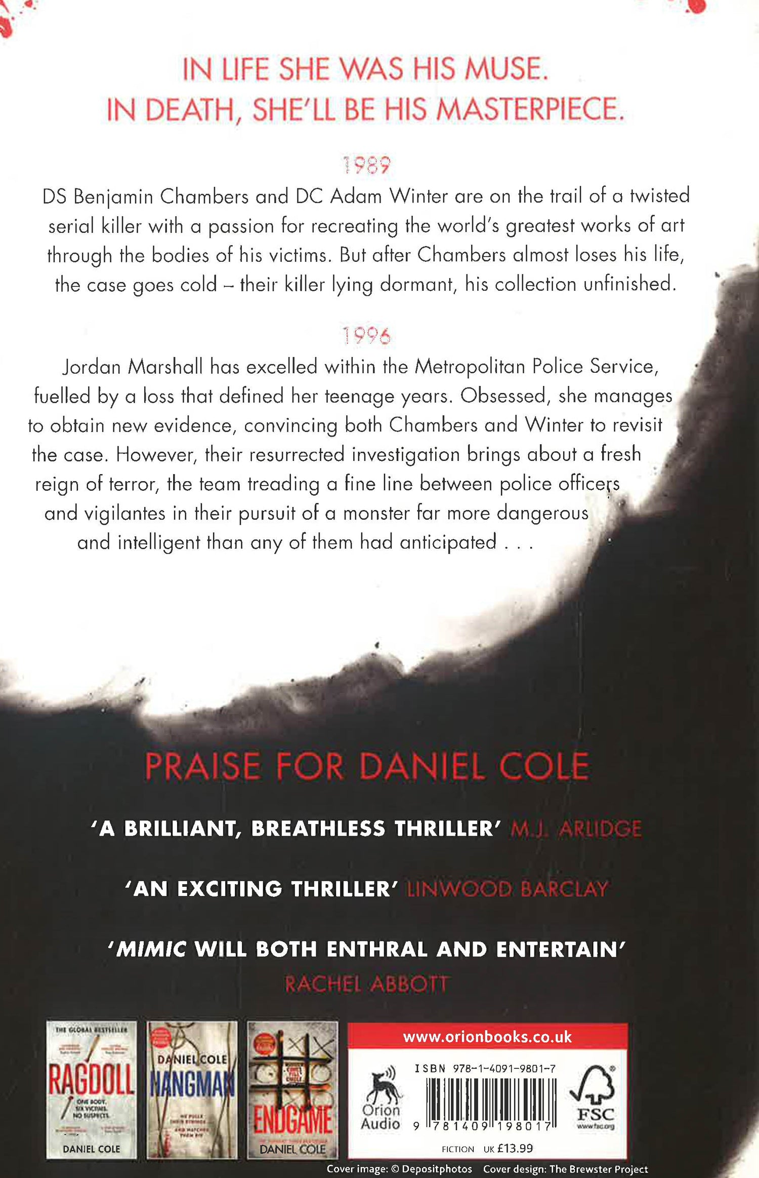 1989. DS Benjamin Chambers and DC Adam Winters are on the trail of a serial killer with a twisted passion for recreating the world's greatest works of art through the bodies of his victims. After Chambers nearly loses his life, the case goes cold due to lack of evidence. The killer lies dormant, his collection unfinished.