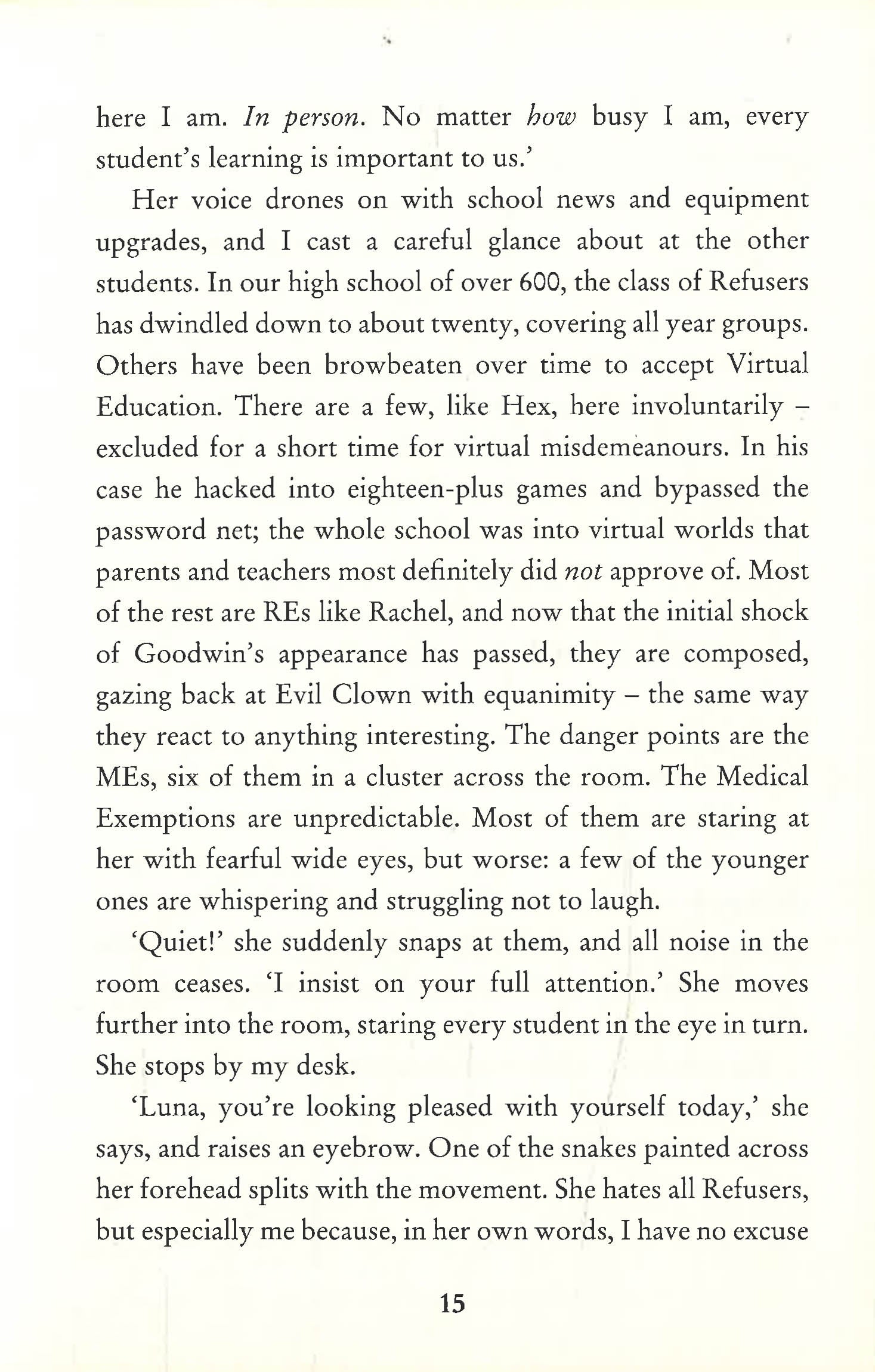 Fans of the award-winning SLATED trilogy won't want to miss this gripping new psychological thriller from Teri Terry!In a future world, life is tightly controlled by the all-powerful PareCo. Standing out from the crowd is dangerous so misfit Luna hides her secrets carefully, not realising her own power. Unlike her friends and family, Luna has never been able to plug into Realtime, PareCo's virtual world, where almost everyone now lives their lives. So how do PareCo know about Luna, and why do they want her for their elite think tank?The truth is hidden in a web of shining silver secrets, and the corrupt authorities would do anything to keep it that way. Can Luna find a way to use her own hidden powers and bring the truth to light before it's too late?