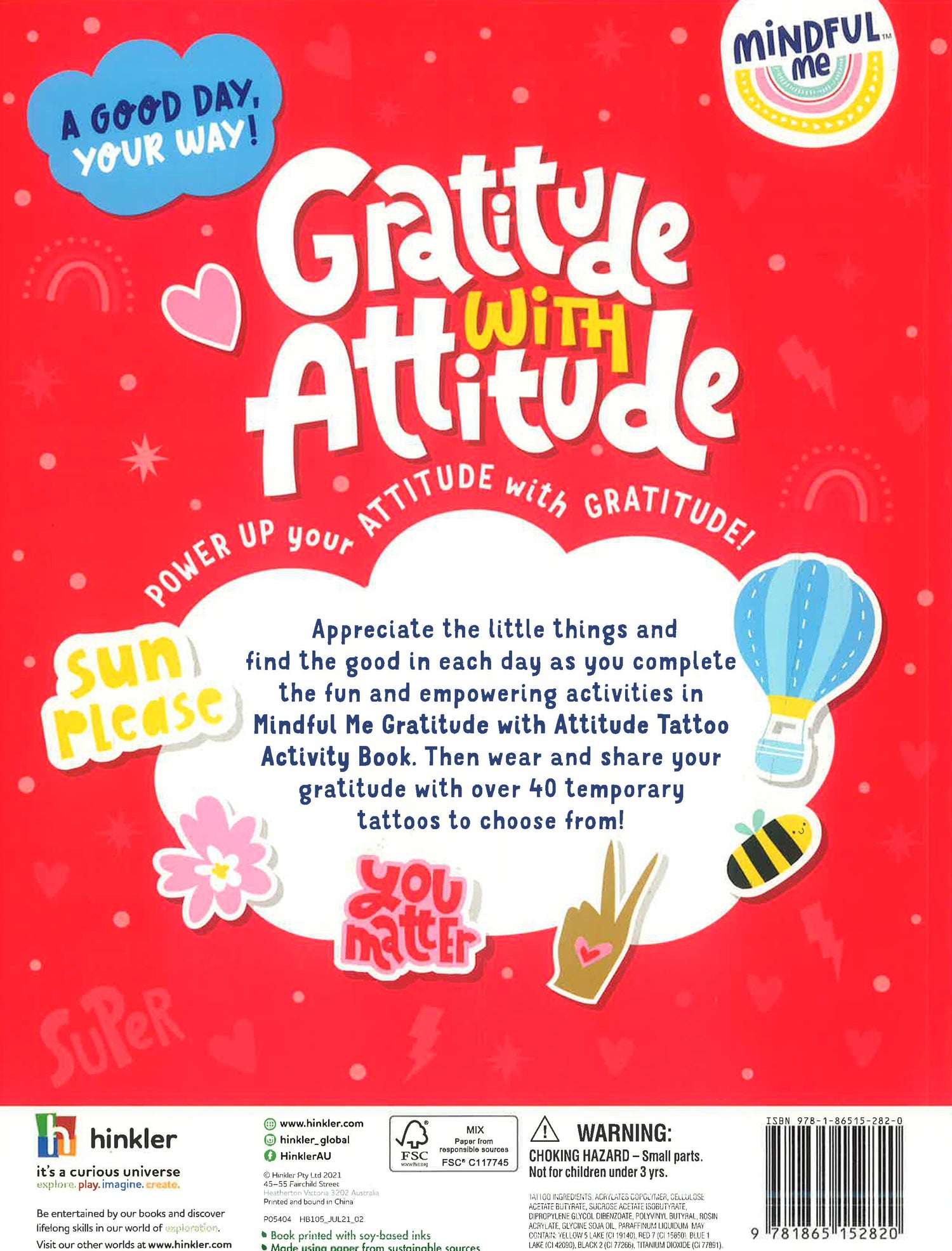 Appreciate the little things and find the good in each day as you complete the fun and empowering activities in Mindful Me Gratitude with Attitude Tattoo Activity Book. Then wear and share your gratitude with over 40 temporary tattoos!