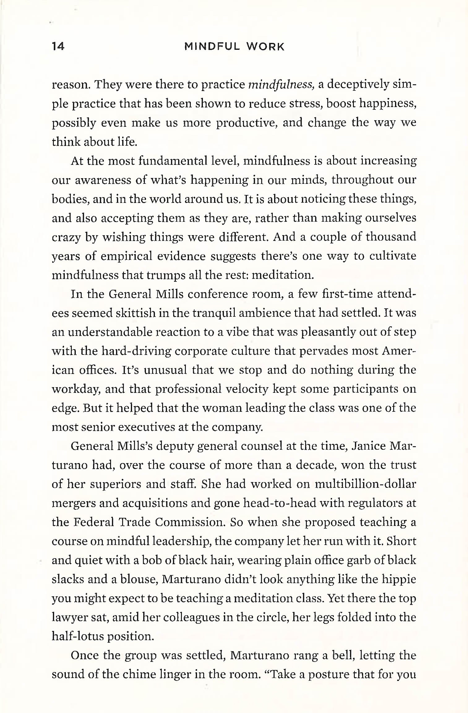 Many American companies, including some of our largest such as General Mills, Ford, Target, and Google have built extensive programs to foster mindful practices among their workers. Mindful Work is the first book to explain how all sorts of businesses and any kind of worker can benefit from meditation, yoga, and other mindful techniques. Mindfulness lowers stress, increases mental focus, and alleviates depression among workers. It has also benefited companies that have adopted it from the millions of dollars Aetna has saved in health-care costs to the ways Patagonia has combined leadership in its market with a pervasively mindful outlook. Mindful Work offers an eye-opening tour through this new landscape, and goes beyond other books on the subject by providing evidence for the practical benefits of mindfulness and showing readers how to become more mindful themselves. *This book may have minor remainder mark.