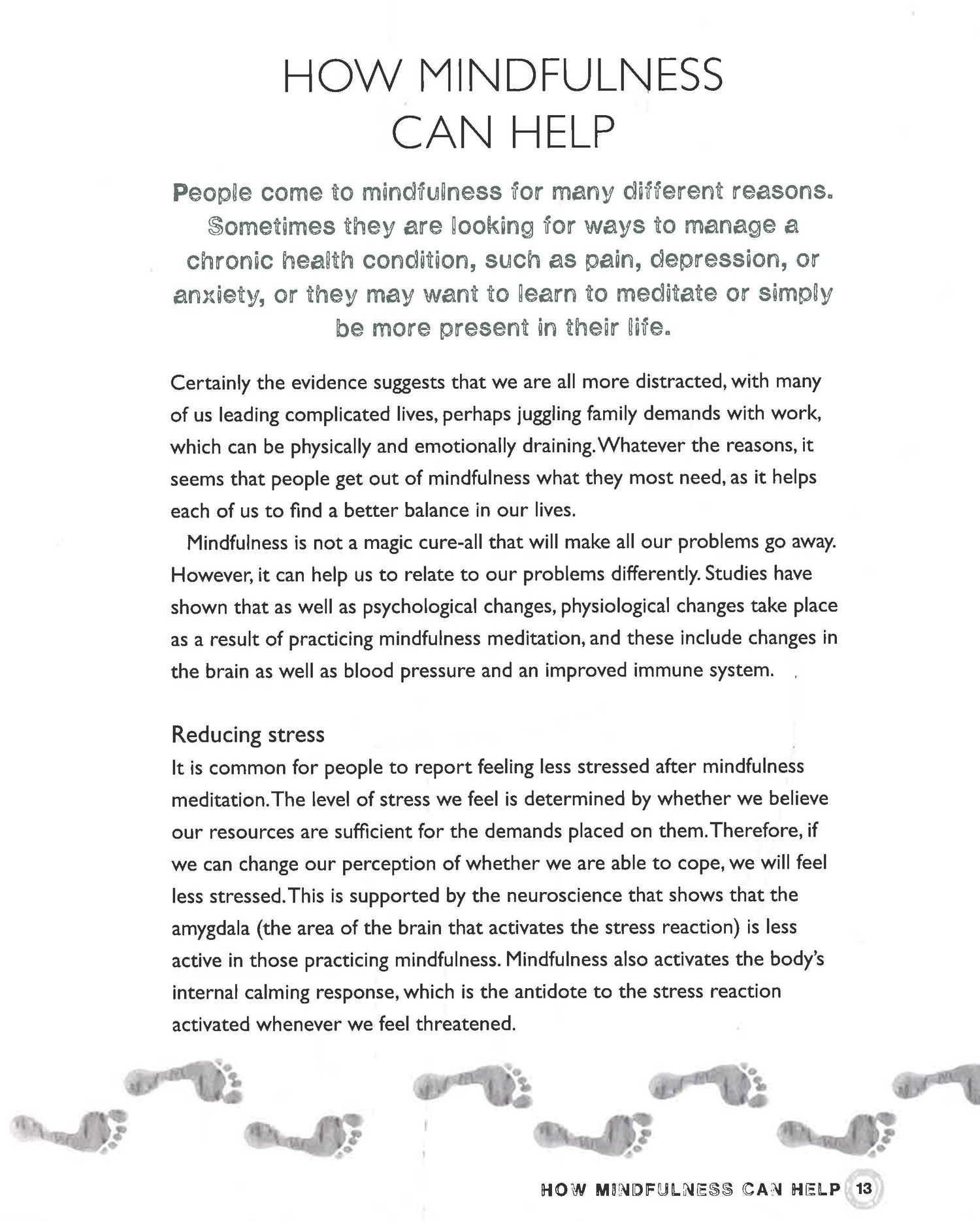 It is often challenging to weave mindfulness into our day as we get caught up in the busy-ness of life. It can feel overwhelming sometimes to know what to do and how to start doing something different and having to decide stops us doing anything at all. Mindfulness on the Go is designed to address this problem. It introduces the essential pillars of mindfulness and how to cultivate it, then offers 52 suggestions, divided into practices and activities, to start using it every day. Practices are mini meditations to do while you are out and about, while activities focus more on becoming aware of your habitual patterns of behaviour, as well as how mindfulness can help you to cultivate new ones. By focusing on just one thing per day, it makes it easier to remember rather than just feeling you should be mindful all the time. As you become familiar with the type of practices, you will find that you begin to do them without the prompts, and mindfulness will become part of your daily life.