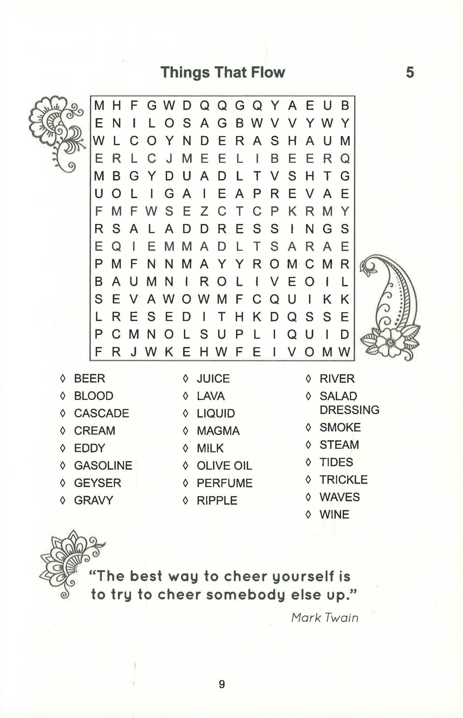 Solving puzzles is a wonderful way to relax and put yourself in a calm and mindful state. Enjoy these themed wordsearch puzzles designed to help you de-stress and promote a feeling of great well-being. Becoming immersed in solving the puzzles in itself brings peace and calm, with the added benefit of the feeling of accomplishment that comes from successfully completing one. Each puzzle is accompanied by an inspirational quote to help you on your mindfulness journey.