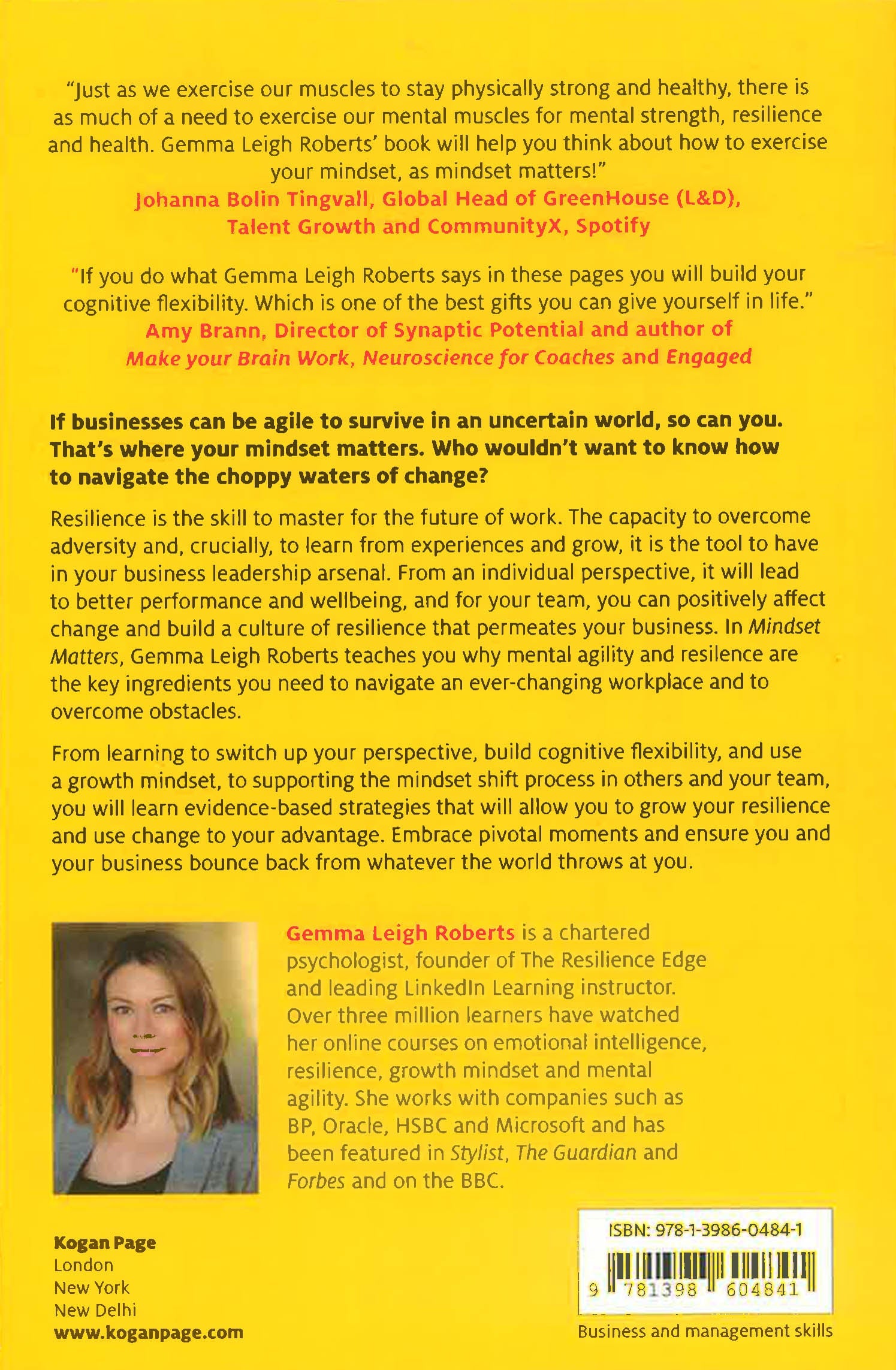 If businesses can be agile to survive in an uncertain world, so can you. The future of work requires you to move flexibly and quickly to react to change; that's where your mindset matters. Who wouldn't want to know how to best navigate the choppy waters of change? Resilience is the skill to master for the future of work. The capacity to overcome adversity and, crucially, to learn from experiences and grow, resilience is the tool to have in your business leadership arsenal. From an individual perspective, it will lead to better performance and wellbeing, and for your team, you can positively affect change and build a culture of resilience that permeates your business. In Mindset Matterschartered psychologist and star LinkedIn Learning instructor, Gemma Leigh Roberts, teaches you why mental agility is the key ingredient to developing resilience and how to achieve it. This book will teach you the principles of thriving in uncertainty. From changing perspectives, emotional flexibility, a growth mindset, to cementing your mindset shift in others and your team, you will learn research-backed strategies that will allow you to grow your resilience and use change to your advantage. With energy and speed, you can embrace moments of pivots and ensure you and your business bounce back from whatever the world throws at you next.