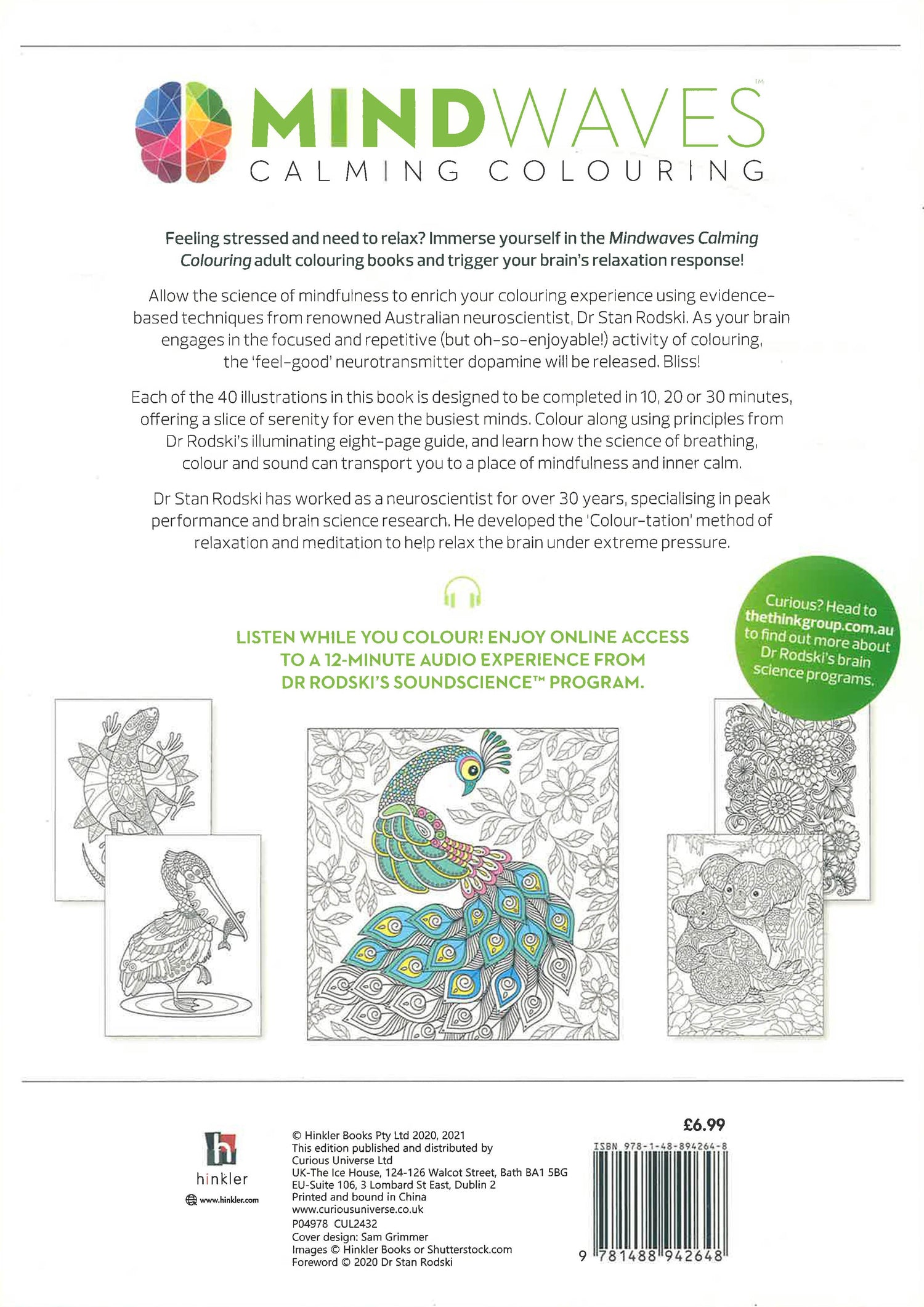 Introduced by renowned Australian neuroscientist Dr Stan Rodski and based on his extensive research, the Mindwaves Calming Colouring books help to harness the power of science to find your inner calm. As the brain engages in the focused and repetitive (but oh-so-enjoyable!) activity of colouring, the ‘feel-good’ neurotransmitter dopamine will be released. Bliss!
