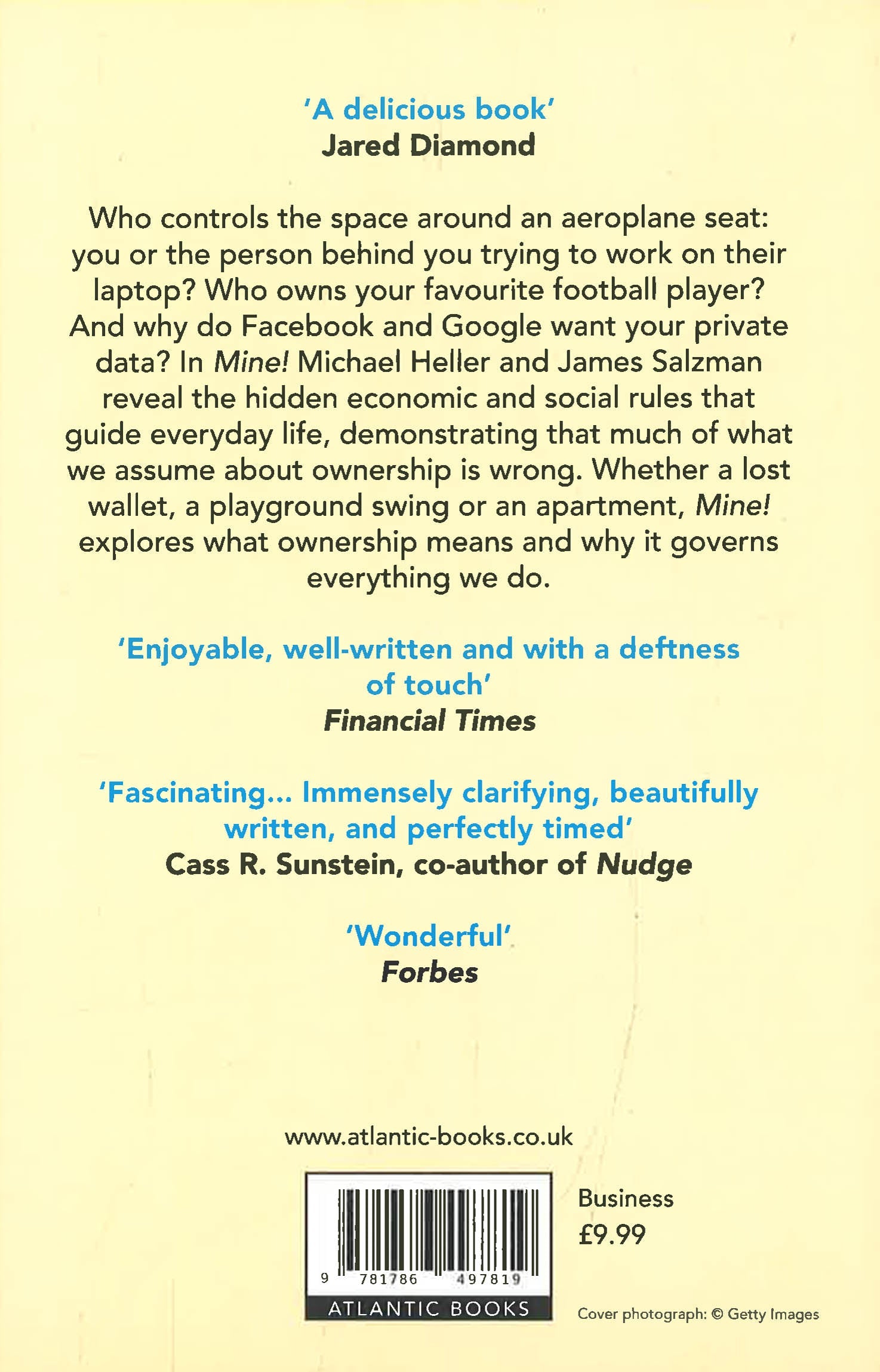 In Mine! Michael Heller and James Salzman reveal the hidden economic and social rules that guide everyday life, demonstrating that much of what we assume about ownership is wrong. Whether a lost wallet, a playground swing or a London flat, Mine! explores what ownership means and why it governs everything we do.