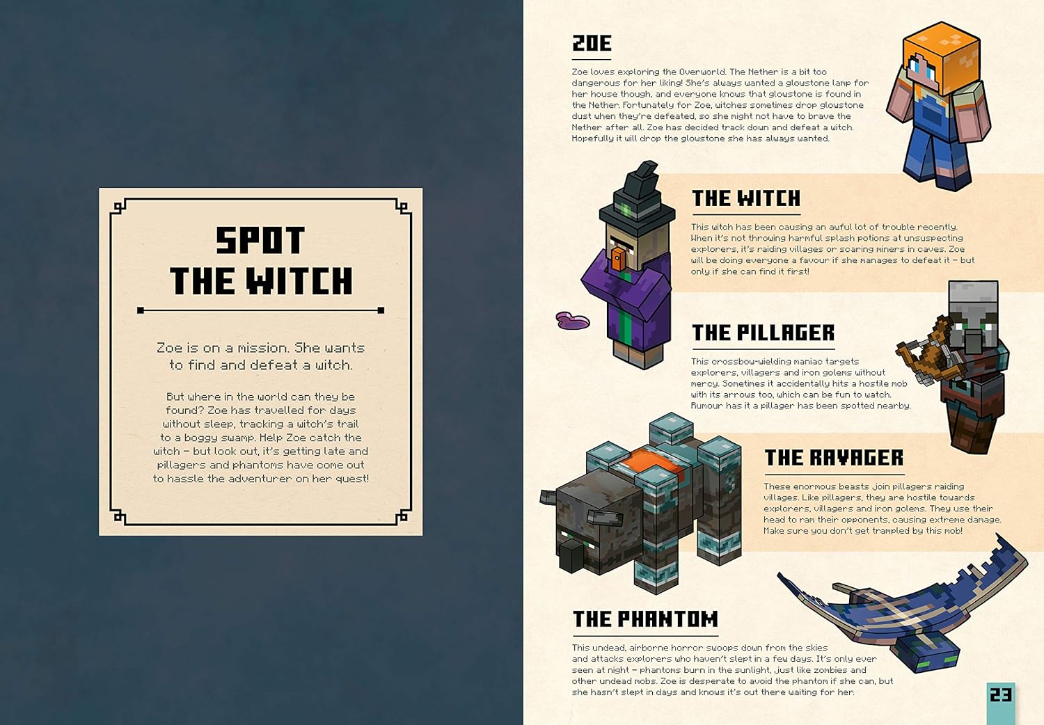 Explore the world of Minecraft and its biomes as you journey across the Overworld, through the fiery Nether and even into the terrifying End dimension, as you join the chase to track down Minecraft's most popular mobs.