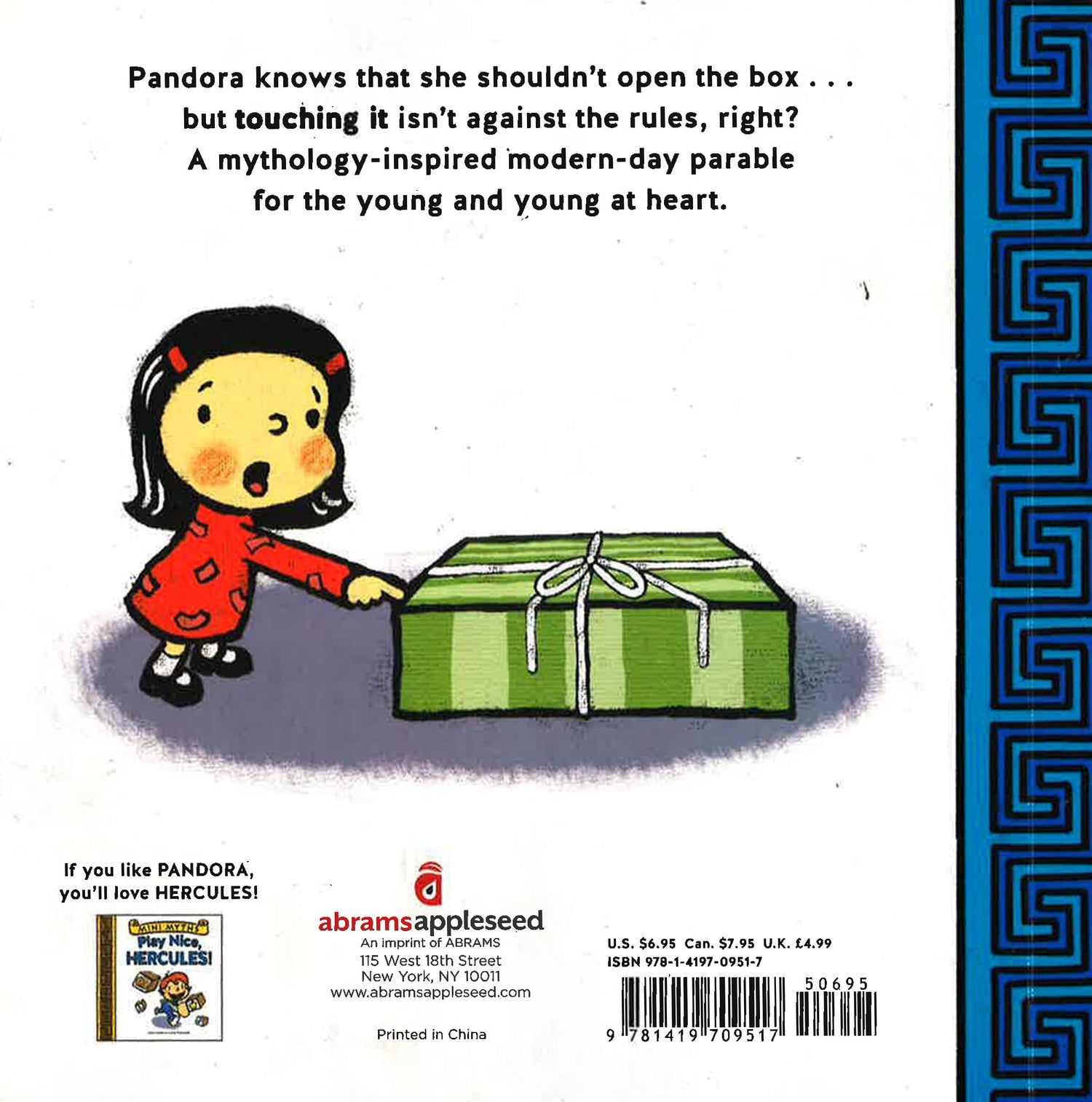 When four-year-old Pandora is warned by her mother not to open a box, her spirited curiosity trumps her obedience. Pandora harmlessly touches the box, innocently leans on the box and eventually, albeit accidentally, bursts the box open! The cupcakes that were hidden inside are ruined, except for one last vestige, which Pandora presents in the hope that her mother still loves her. Leslie Patricelli's famously humorous illustrations bring a playful narrative to Joan Holub's carefully crafted text. This book, along with Hercules, launches the Mini Myths, a series of mythologically-inspired modern-day parables in board book form, featuring a read-aloud summary of the Greek myth at the very end.