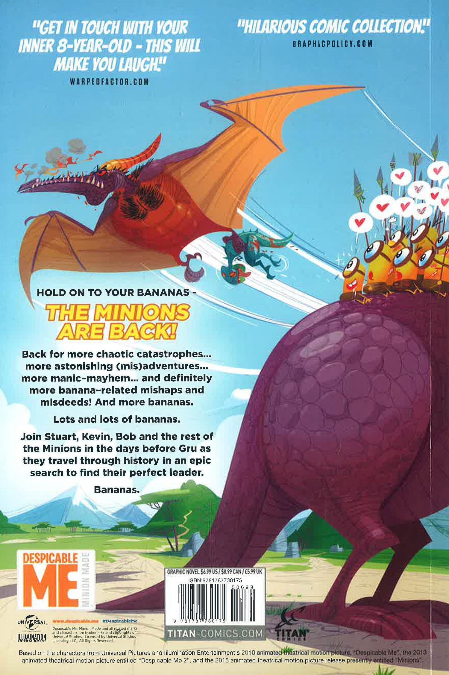 Hold on to your bananas - the Minions are back! The Minions are back, back for more! More chaotic catastrophes, more astonishing (mis)adventures, more mayhem, and definitely more banana related mishaps and misdeeds, And more bananas. Lots and lots of bananas!
