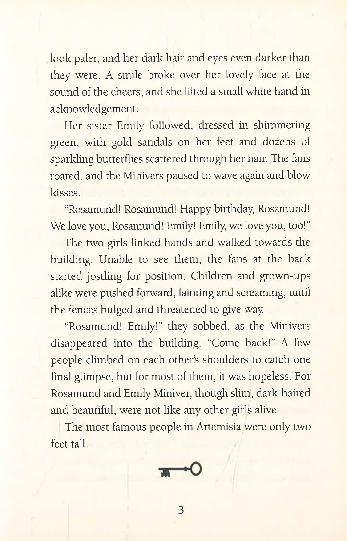 The Minivers are TV-star princesses. They're rich, famous, talented and beautiful - and they're only two feet tall. Rosamund and Emily Miniver live in a luxurious miniature palace. Worshipped by adoring fans, they make chart-topping CDs, have their own fashion label and are the most famous celebrities in Artemesia. But suddenly their glamorous show-biz life goes horribly wrong, and the tiny sisters find themselves on the run from big and powerful enemies..."Minivers on the Run" is the first action-packed story in a new series from an internationally popular Australian author about two irresistibly-appeal characters. Girl readers of 8 and above will love these tiny, feisty divas.