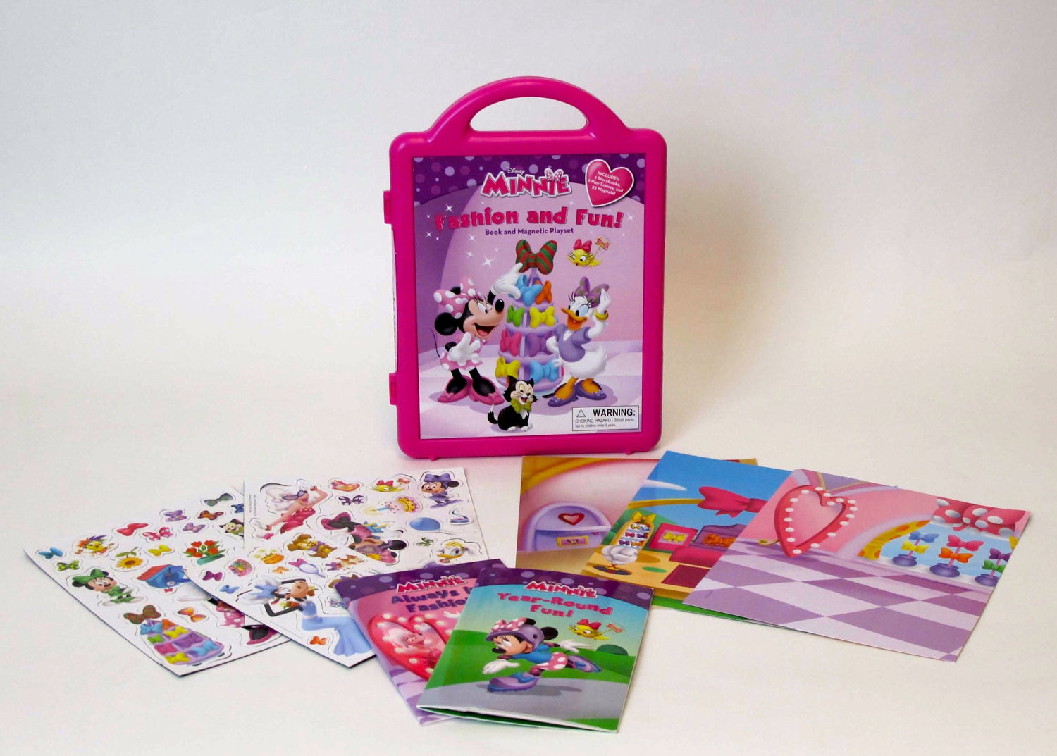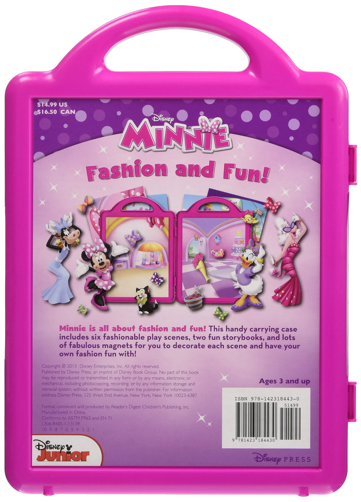 Minnie, Daisy, Cuckoo-Loca, and the rest of the Bow-tique gals prepare for a fashion show, a birthday party, and more in this fun magnetic play set that features 2 storybooks, 53 magnets, and 6 play scenes.
