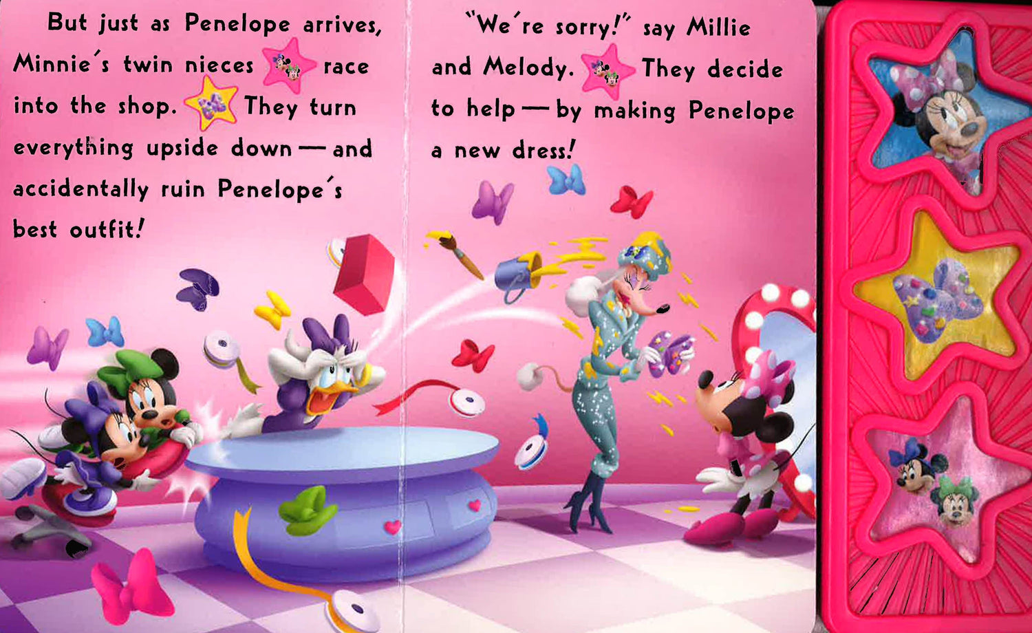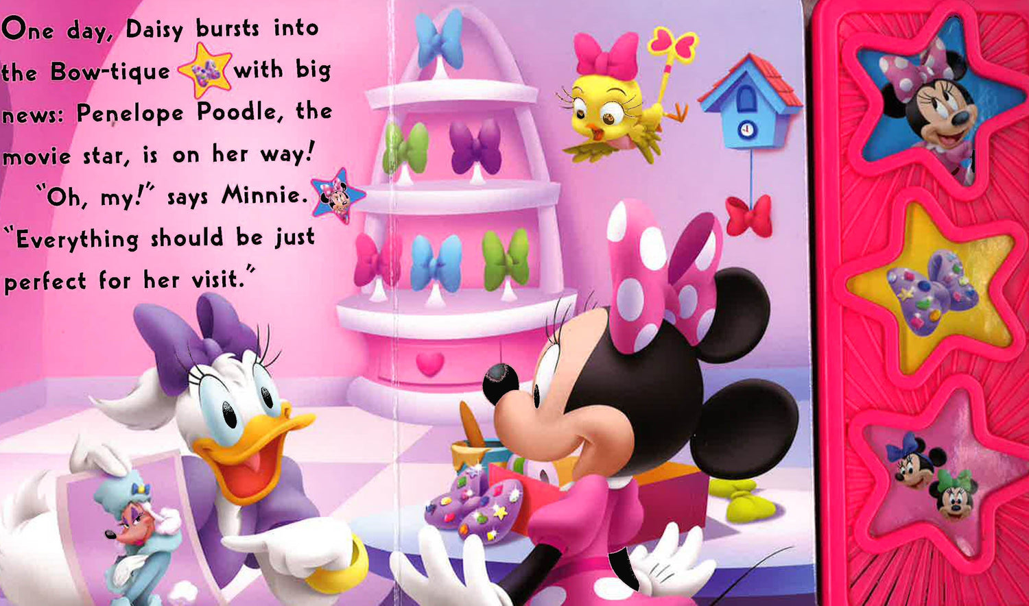 Press 3 buttons to hear sounds from Minnie's sparkling Bow-tique!