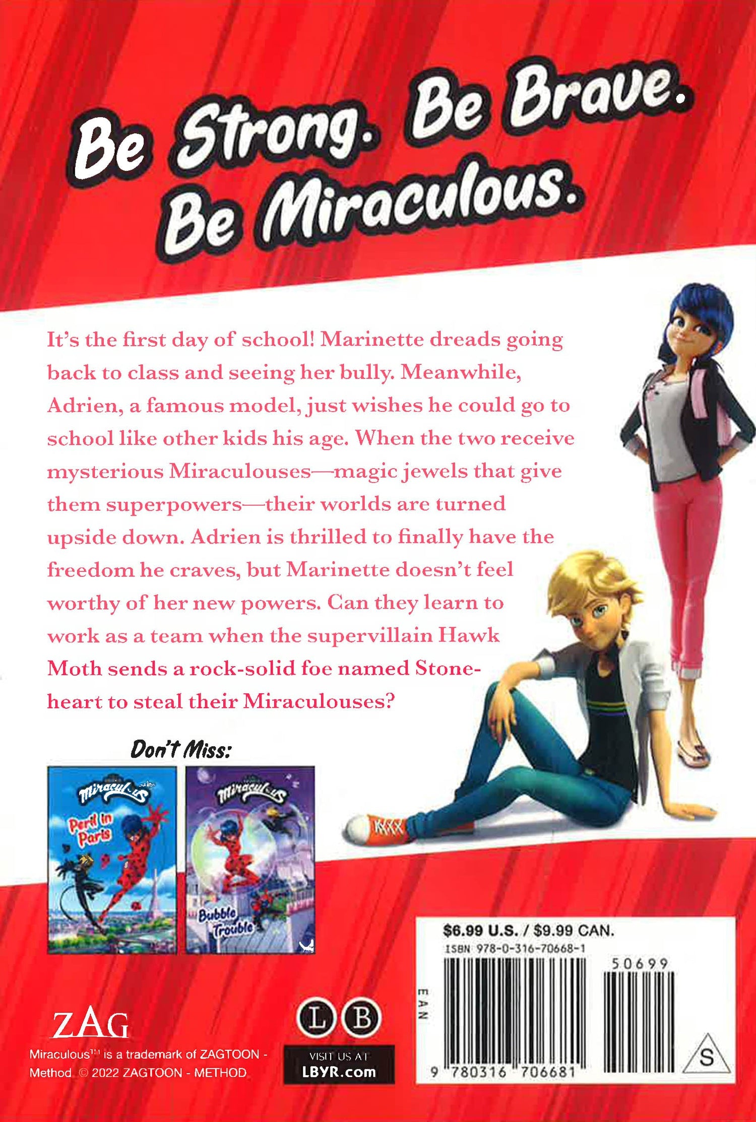 It's the first day of school and Marinette is dreading going back to class and seeing Chloé, the girl who bullies her. Meanwhile, Adrien, a famous model, wishes he could go to school like every other teenager, but his overprotective father refuses to let him! When the two receive mysterious Miraculouses, magical jewels that give them super powers, it turns their worlds upside down. Adrien is thrilled to transform into Cat Noir and get the freedom he craves, but Marinette struggles with becoming Ladybug; she lacks confidence and doesn't feel worthy of her powers. Can the two learn to work as a team and build Marinette's confidence when supervillain Hawk Moth sends a rock-solid foe named Stone Heart to destroy Paris?