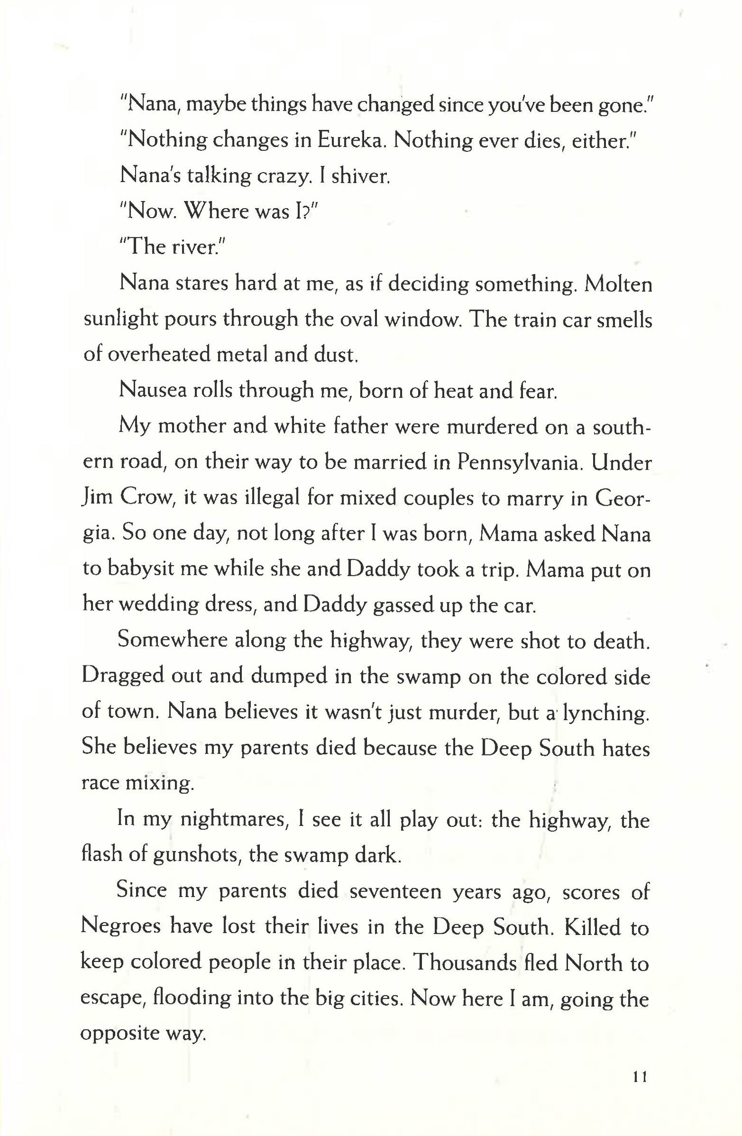 Meanwhile, Charlie Yates, an aspiring Civil Rights organizer from Harlem, is speeding toward Eureka beside her dying grandmother. Nana's last wish is to be buried in the land they fled seventeen years ago, after the brutal murder of Charlie's parents, who were killed for loving across the color line. On a segregated train car, brave Charlie has never felt so powerless. Nana's told her plenty of stories about the cursed town they're headed for-but she's never told her that she left a twin sister, Magnolia, behind.