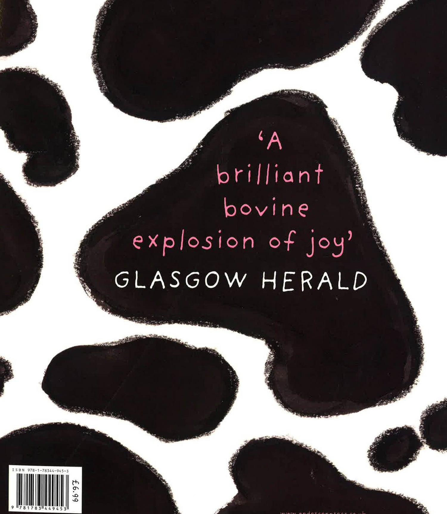There was once a cow who was always miserable, and a lamb who tried to cheer her up. But the cow was impossible to cheer up! Even Father Christmas was too jolly for her. The poor lamb burst into tears himself, and wallowed in misery. Finally the cow started to miss him, and gave him the best birthday present ever - a great big grin!