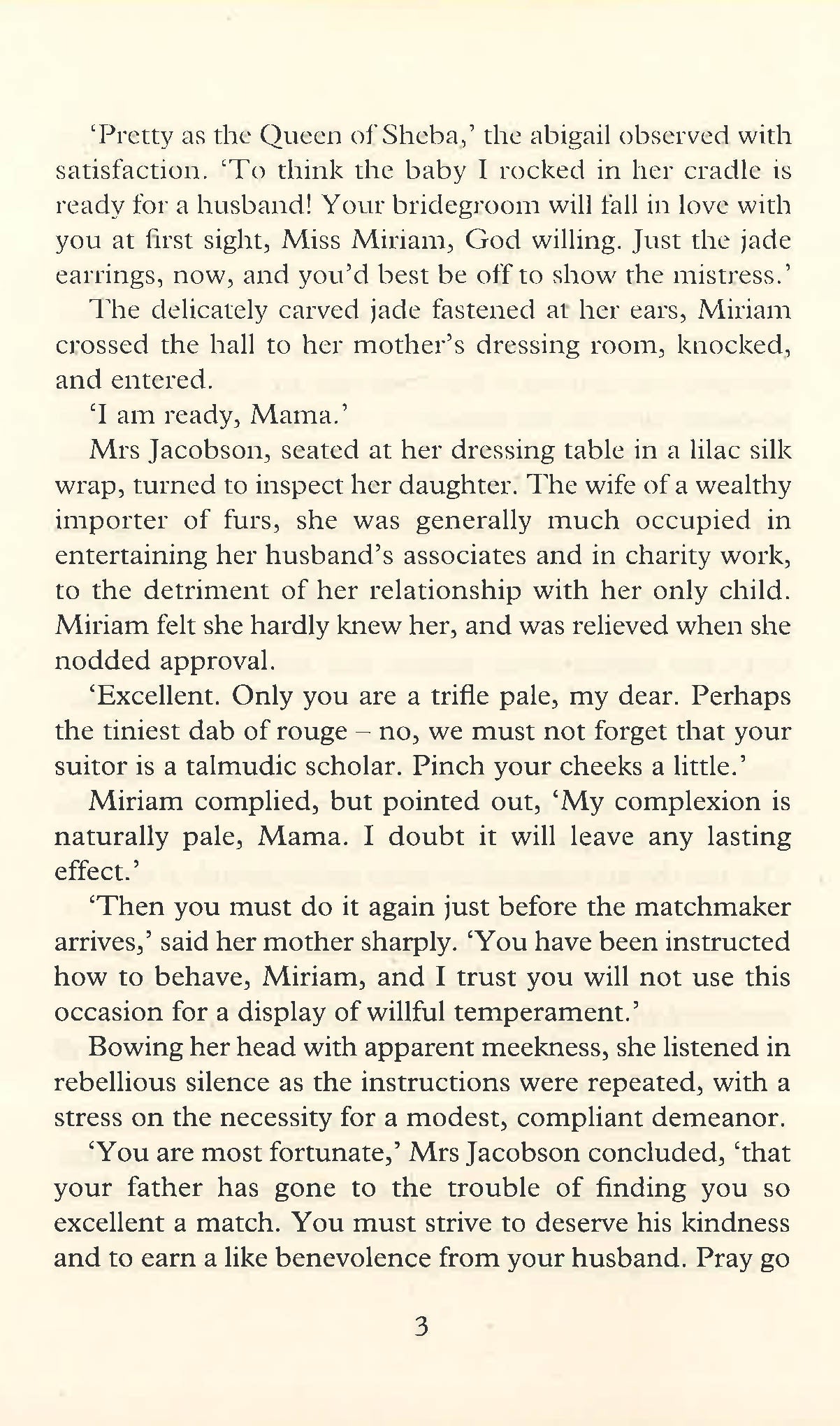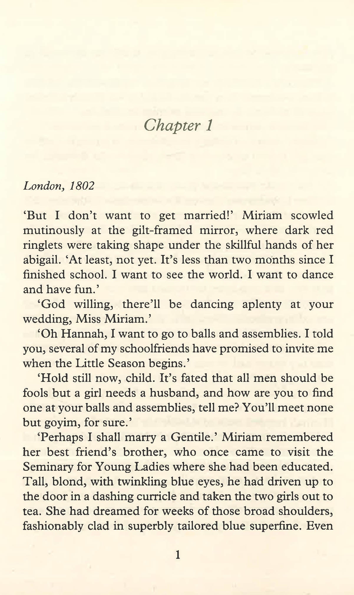 Improper and impious!' her family crimes, but in most unladylike fashion, Miriam Jacobson defies her parents. Finding the thought of marriage horrifying, she rejects their suitable choice of bridegroom, choosing instead a life of adventure and travelling to the continent to join her physician uncle in his work.Following on from his death and the outbreak of war, Miriam decides it's time to go home. To secure passage to England, she accepts a patriotic mission from the Rothschild banking family, though it means enduring a lengthy journey through France and Spain in the company of two insufferable gentlemen - one an intolerant aristocrat and the second a member of her own faith who seems to dislike her and yet is somehow disturbingly familiar...