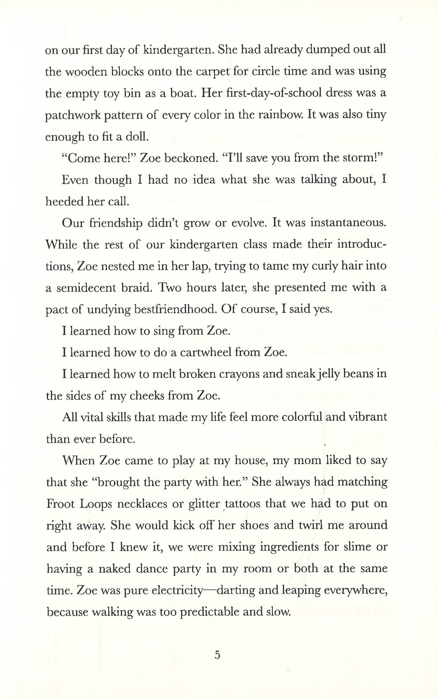 Zoe and Hank (short for Hannah) have been inseparable since they met in elementary school. The leader of the pack, Zoe is effortlessly popular while Hank hides comfortably in her shadow. But when Zoe's parents unexpectedly divorce, Zoe's perfect facade starts cracking little by little. Sinking under the weight of her broken family, Zoe develops an eating disorder. Now she must rely on Hank for help.