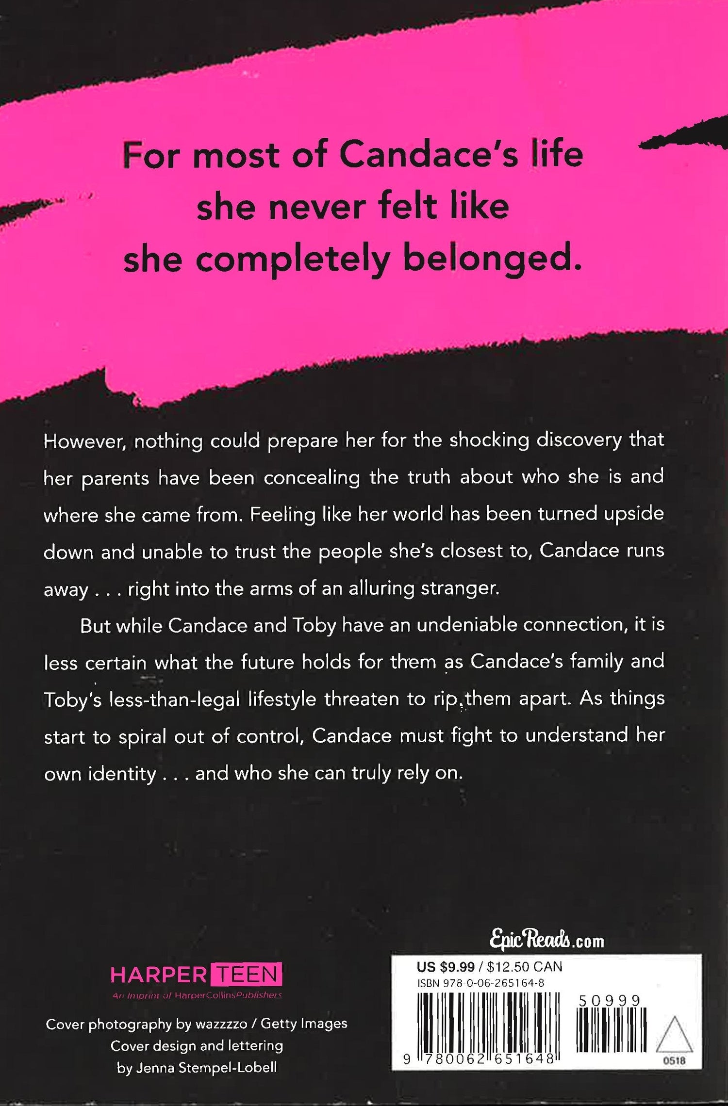 For most of Candace’s life she never felt like she completely belonged. But nothing could prepare her for the shocking discovery that her parents have been concealing the truth about who she is and where she came from her entire life.Feeling like her world has been turned upside down, and unable to trust the people she’s closest to, Candace runs away...right into the arms of an alluring stranger.But while Candace and Toby have an undeniable connection, it's less certain what the future holds for them as Candace’s family and Toby’s less-than-legal lifestyle threaten to rip them apart.As things start to spiral out of control, Candace must fight to understand her own identity...and who she can truly rely on.