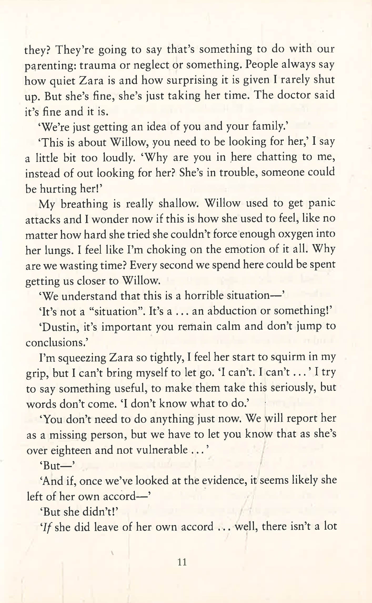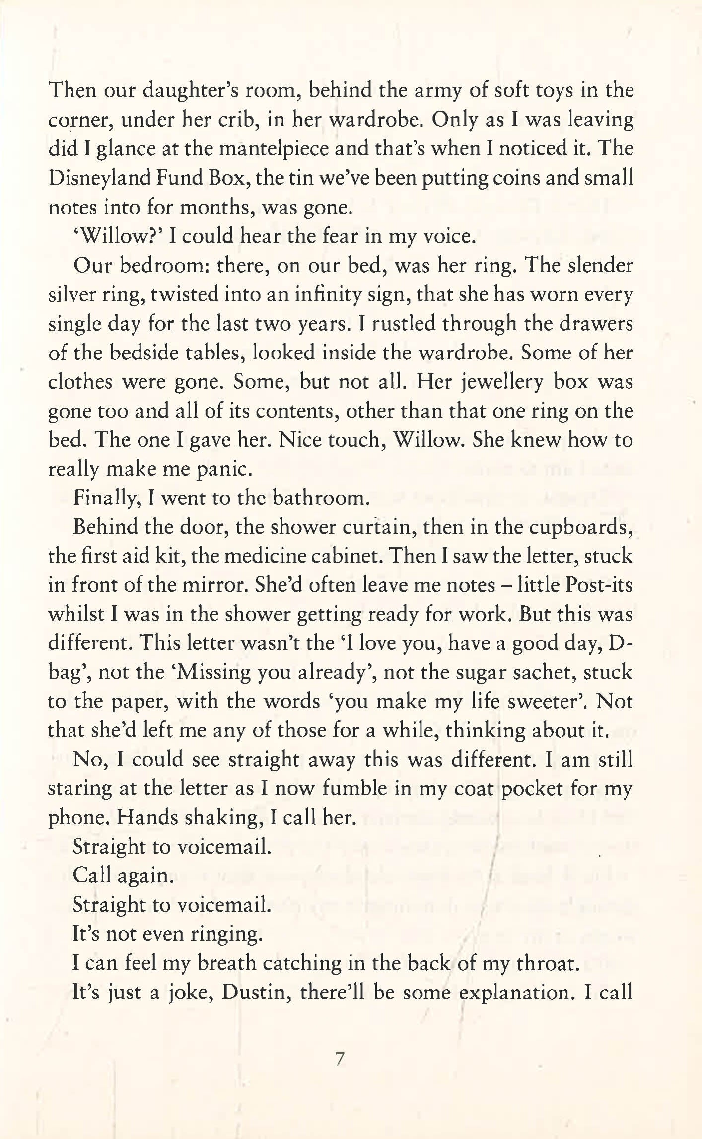 So his world is shattered when he arrives home to find that Willow has disappeared, leaving only a cryptic note to say goodbye with no explanation of where she has gone or why she has left.