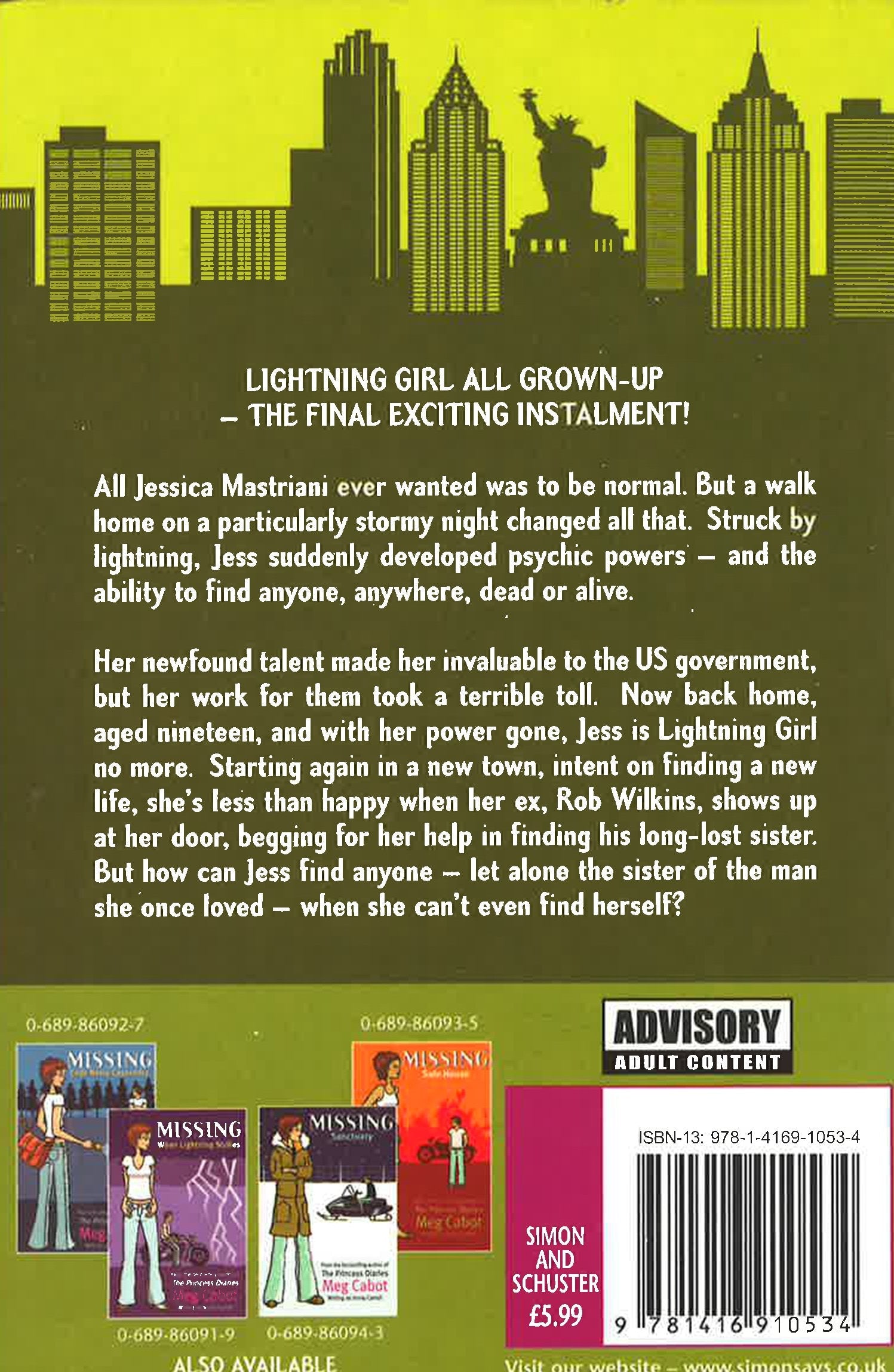 Jess is a shadow of her former self, her powers gone, Lightning Girl no more. But Jess knows her powers aren't the only thing that's gone: she's lost herself, as well. Starting over in a new town, intent on finding a new life in college, Jess is less than happy when Rob Wilkins, her ex, shows up at her door, begging her to help him find his long lost sister. But how can Jess, her powers gone, find anyone? Let alone the sister of a man she once loved (and believed, wrongly, loved her back) when she can't even find herself?