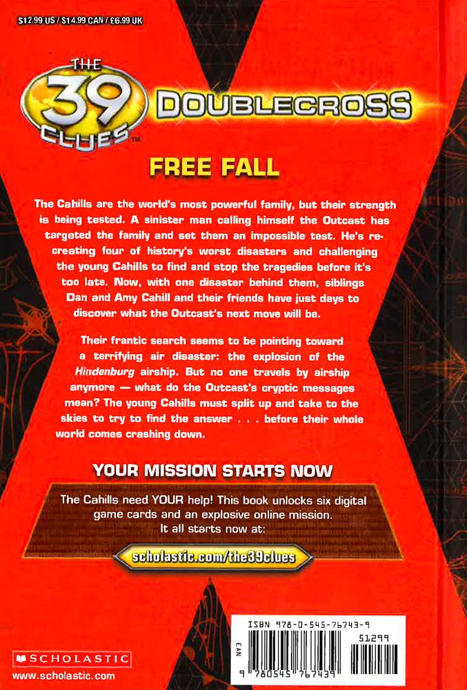 Never turn your back on the Cahills . . . The most powerful family history has ever known returns with a vengeance in The 39 Clues: Doublecross! The Cahills are the world's most powerful family, but their strength is being tested. A sinister man calling himself The Outcast has targeted the family and set them an impossible test. He's recreating four of history's worst disasters and challenging the young Cahills to find and stop the tragedies before it's too late. Now, with one disaster behind them, siblings Dan and Amy Cahill and their friends have just days to discover what the Outcast's next move will be. Their frantic search seems to be pointing toward a terrifying air disaster, the explosion of the Hindenburg airship. But no one travels by airship anymore -- what do the Outcast's cryptic messages mean? The young Cahills must split up and take to the skies to try to find the answer . . . before their whole world comes crashing down.