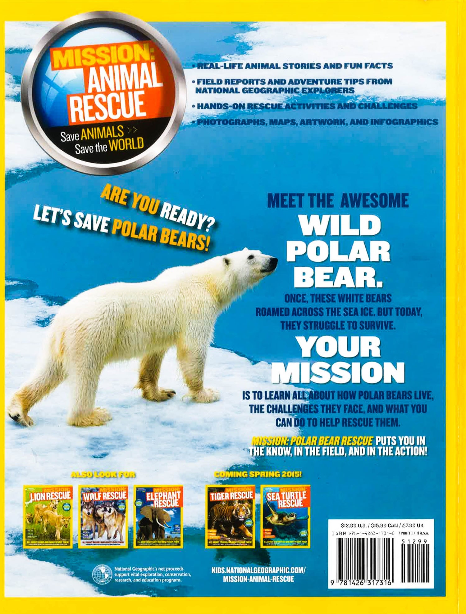 Inspiring young animal lovers to get up close to the big bears of the Arctic and the real-life challenges they face is what this fascinating book is all about. Discover amazing true adventure stories, gorgeous photography, and hands-on activities, and more. Kids are introduced to real-life polar bears to learn about their world in more detail-their habitats, challenges, and successes-in order to take action and help save these amazing endangered creatures. Proceeds help National Geographic conservation efforts.
