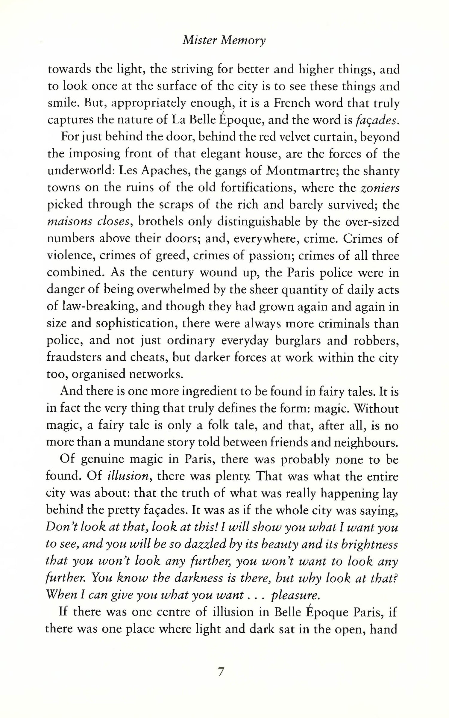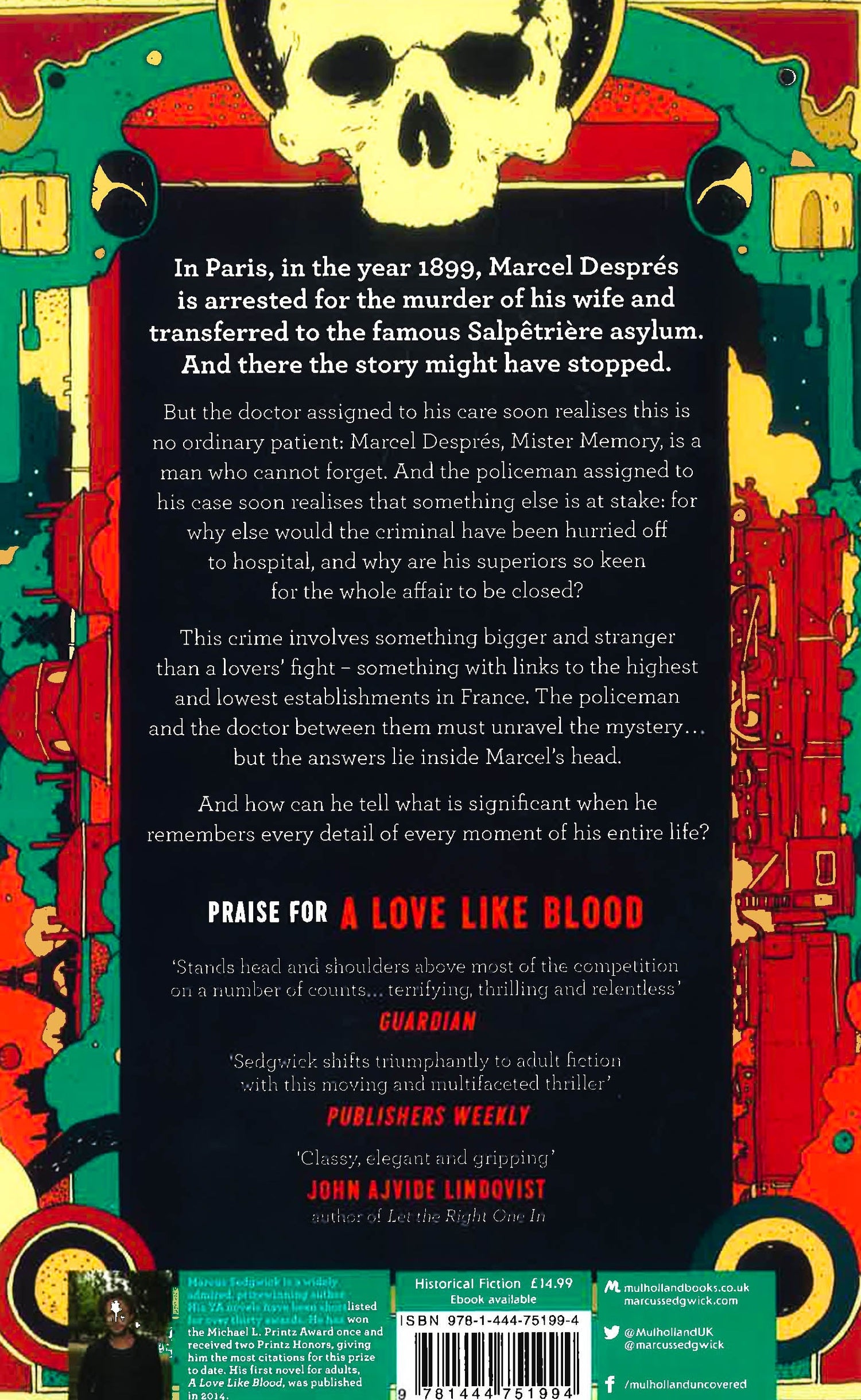 In Paris, at the end of the nineteenth century, a man with a perfect memory murders his wife. But that is only the start of the story... A dazzling literary mystery from prizewinning author Marcus Sedgwick. In Paris in the year 1899, Marcel Despres is arrested for the murder of his wife and transferred to the famous Salpetriere asylum. And there the story might have stopped. But the doctor assigned to his care soon realises this is no ordinary patient: Marcel Despres, Mister Memory, is a man who cannot forget. And the policeman assigned to his case soon realises that something else is at stake: for why else would the criminal have been hurried off to hospital, and why are his superiors so keen for the whole affair to be closed? This crime involves something bigger and stranger than a lovers' fight - something with links to the highest and lowest establishments in France. The policeman and the doctor between them must unravel the mystery... but the answers lie inside Marcel's head. And how can he tell what is significant when he remembers every detail of every moment of his entire life? For fans of Scarlett Thomas, Carlos Ruiz Zafon and Patrick Suskind, this is a captivating literary mystery about memory, history and fate.