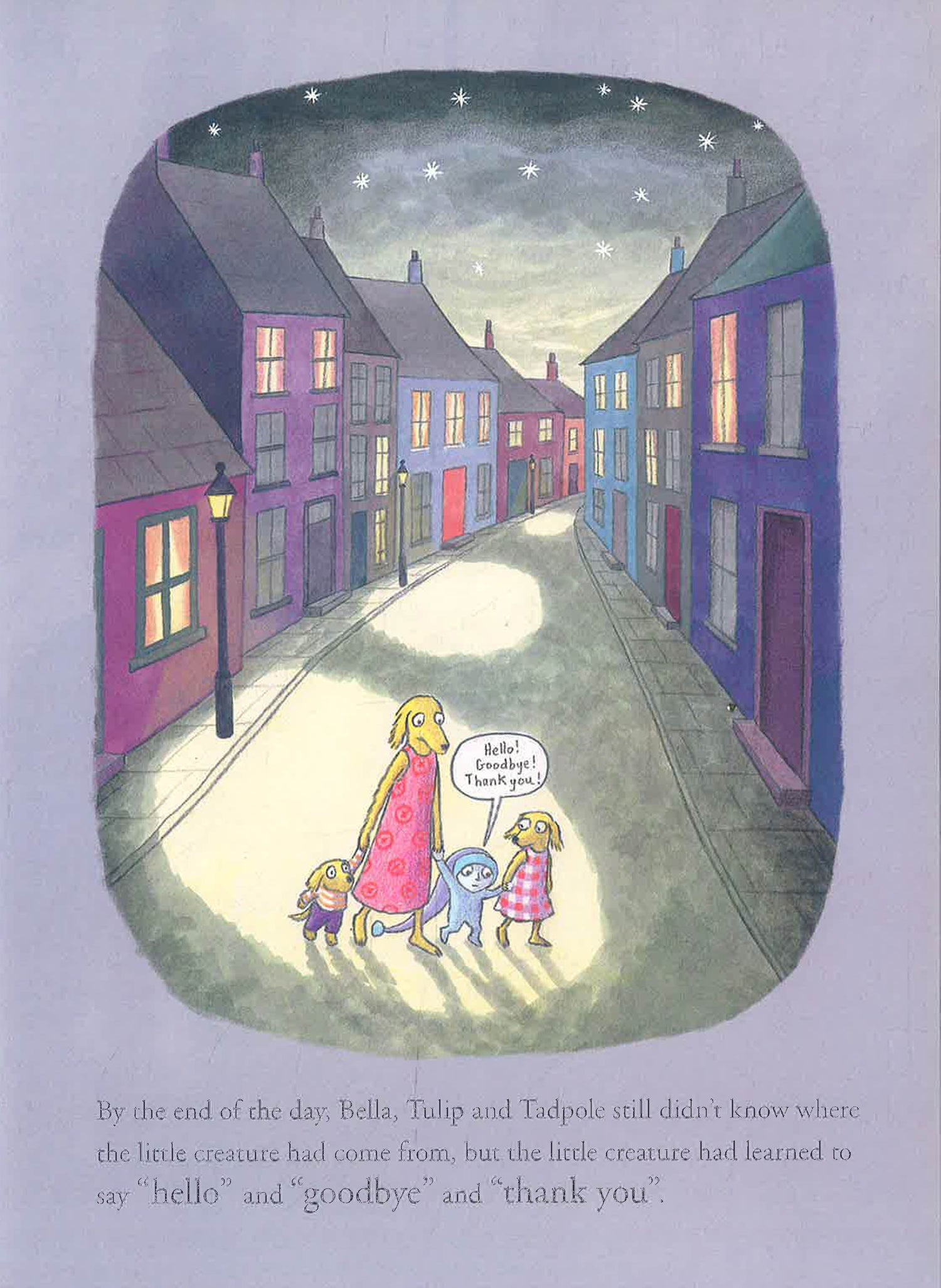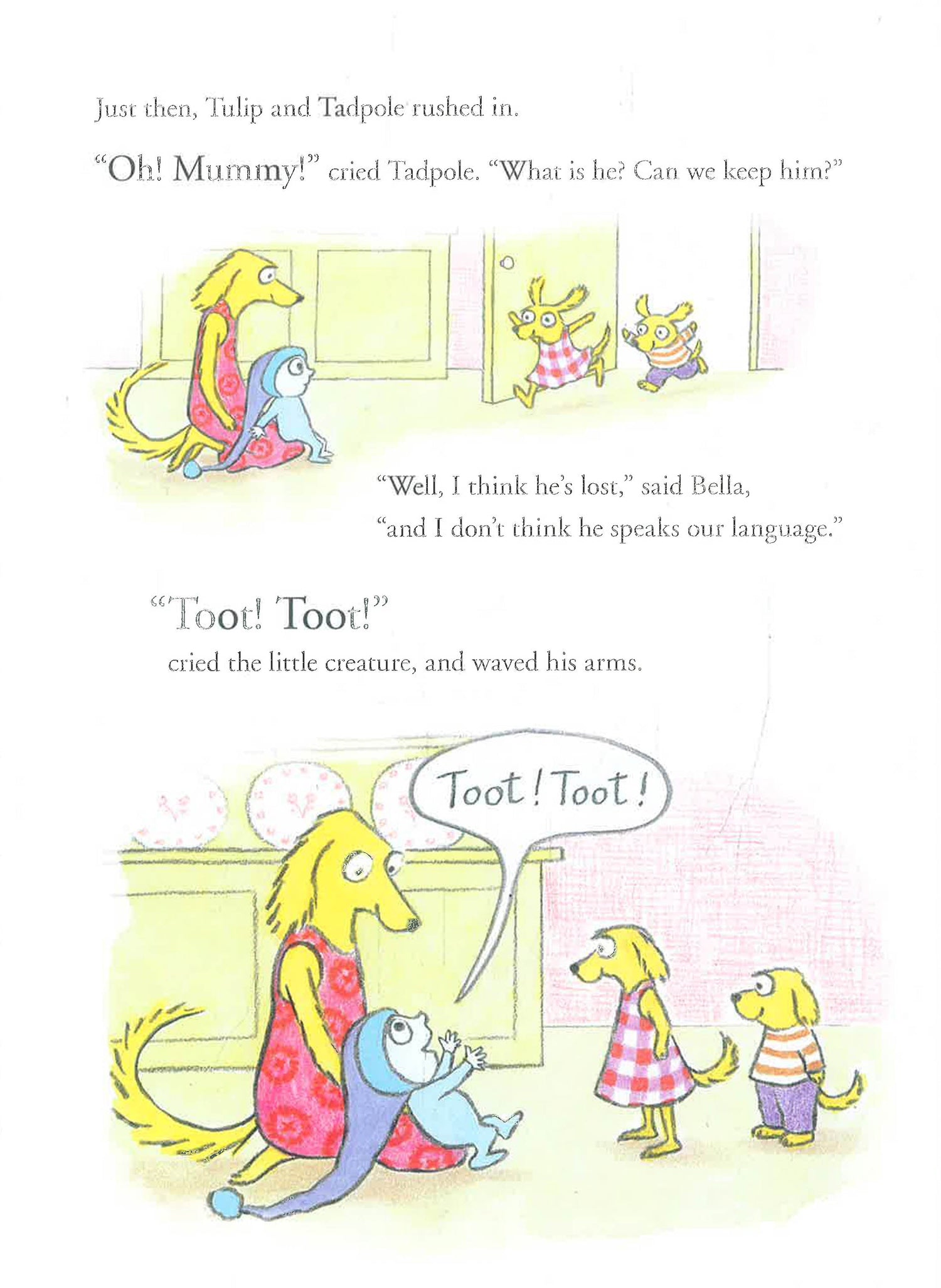 When Bella opens her front door and finds an other-wordly, little stranger on the doorstep, her life changes forever! Cold, hungry and lost, the only word the stranger can say is ‘Toot!’, so Bella and her children, name him Mister Toots, before giving him something to eat and a comfy bed. Soon Mister Toots becomes a much-loved member of the family and neighbourhood. But one terrible day, he disappears into the sky… Will anyone ever see him again?