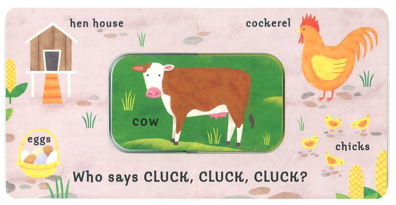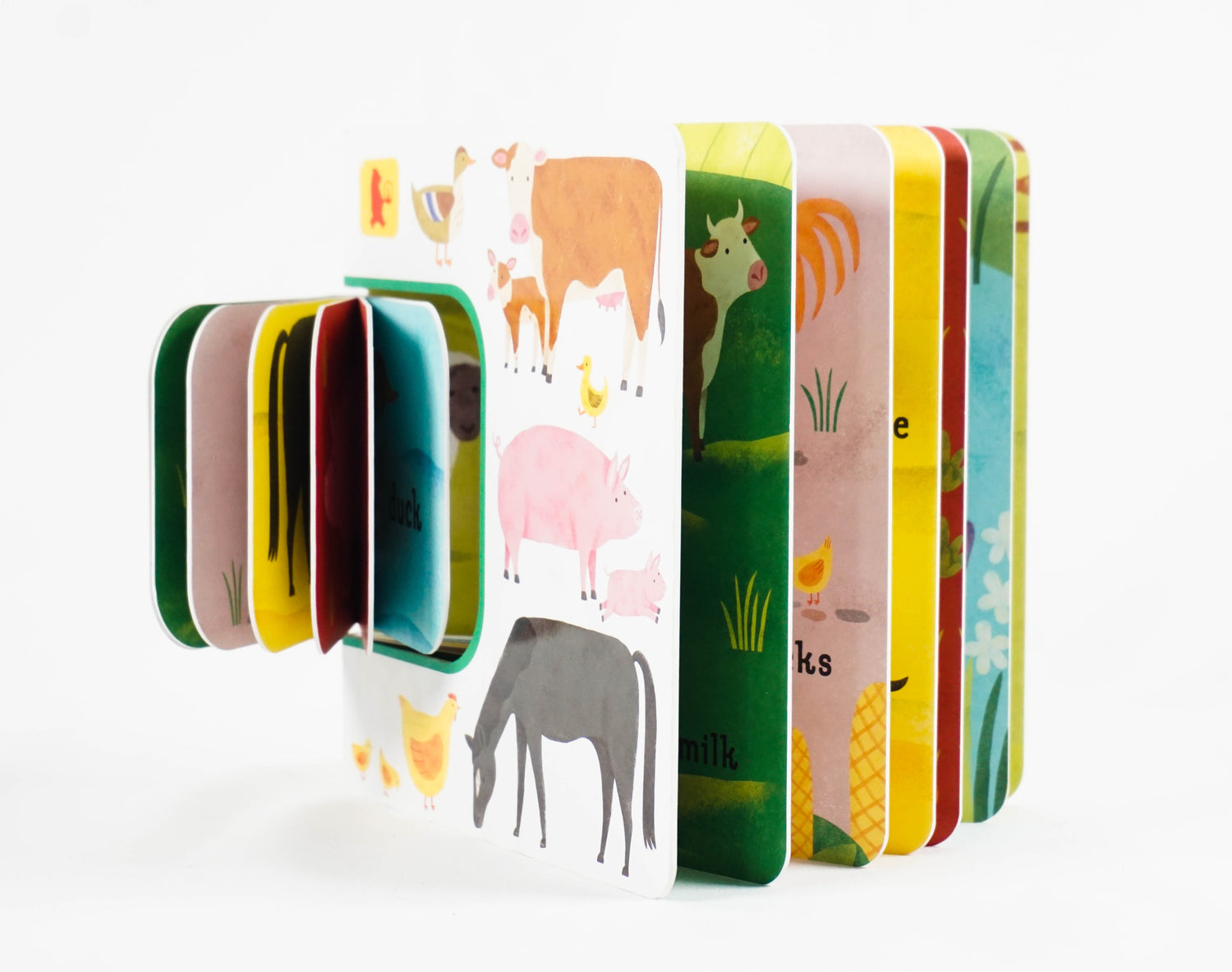 Turn the pages to match the farm animals and their noises in this beautiful, bright baby book.Turn the pages of the brilliant book within a book to match the animals and their noises in this stylish, interactive board book. Bright colours and simple words introduce children to farm animals and their noises and the mix-and-match game makes learning fun. A perfect first book to share with your baby.