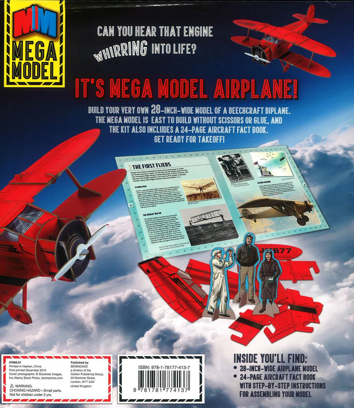 It's Mega Model Airplane! Build your very own 28 inch wide model of a Beechcraft biplane. The mega models is easy to build without scissors or glue, and the kit also includes a 24-pages aircraft fact book. Get ready for takeoff!