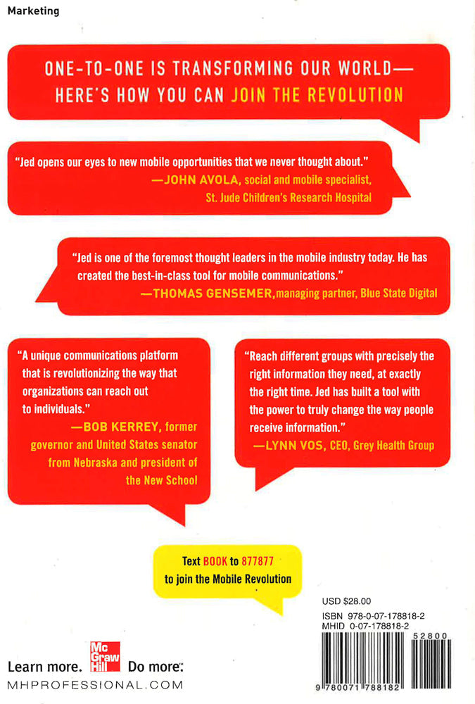 One-to-One is transforming our world-here' s how you can join the RevolutionWhat would your organization do with a technology that lets you crowdsource instantly and effortlessly and reach people who WANT to hear from you wherever they happen to be? Such a tool already exists and it's in billions of mobile devices worldwide: SMS, or text messaging.However, there's more to messaging than simply broadcasting texts. To succeed with mobile messaging in the long term-without disrupting your business or distracting your customers-you need to understand the bigger movement that's underway.The Mobile Marketing Revolution gives you the framework to listen to, empower, inform, engage, and enlist the very people on which your success depends. From fundraising to polling to selling products and services, this book shows how to use mobile messaging to turn even the briefest initial interaction into a permanent engaged relationship. Better still, you can achieve all this without expanding overhead or building campaigns from scratch, but instead by integrating mobile into your organization's existing processes and practices.