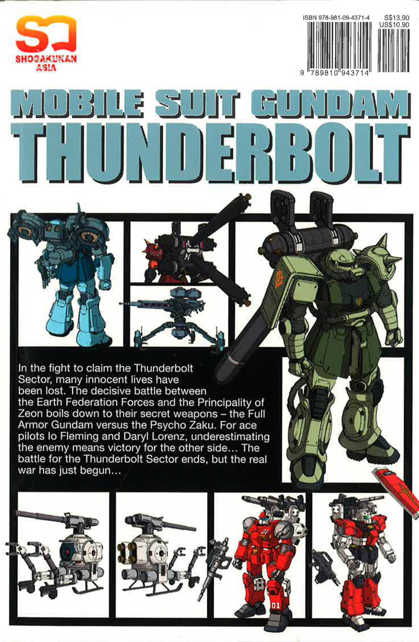 In the fight to claim the Thunderbolt Sector, many innocent lives have been lost. The decisive battle between the Earth Federation Force and the Principality of Zeon boils down to their secret weapons - the Full Armor Gundam versus the Psycho Zaku. For ace pilots lo Fleming and Darly Lorenz, underestimating the enemy means victory for the other side... The battle for the Thunderbolt Sector ends, but the real war has just begun...