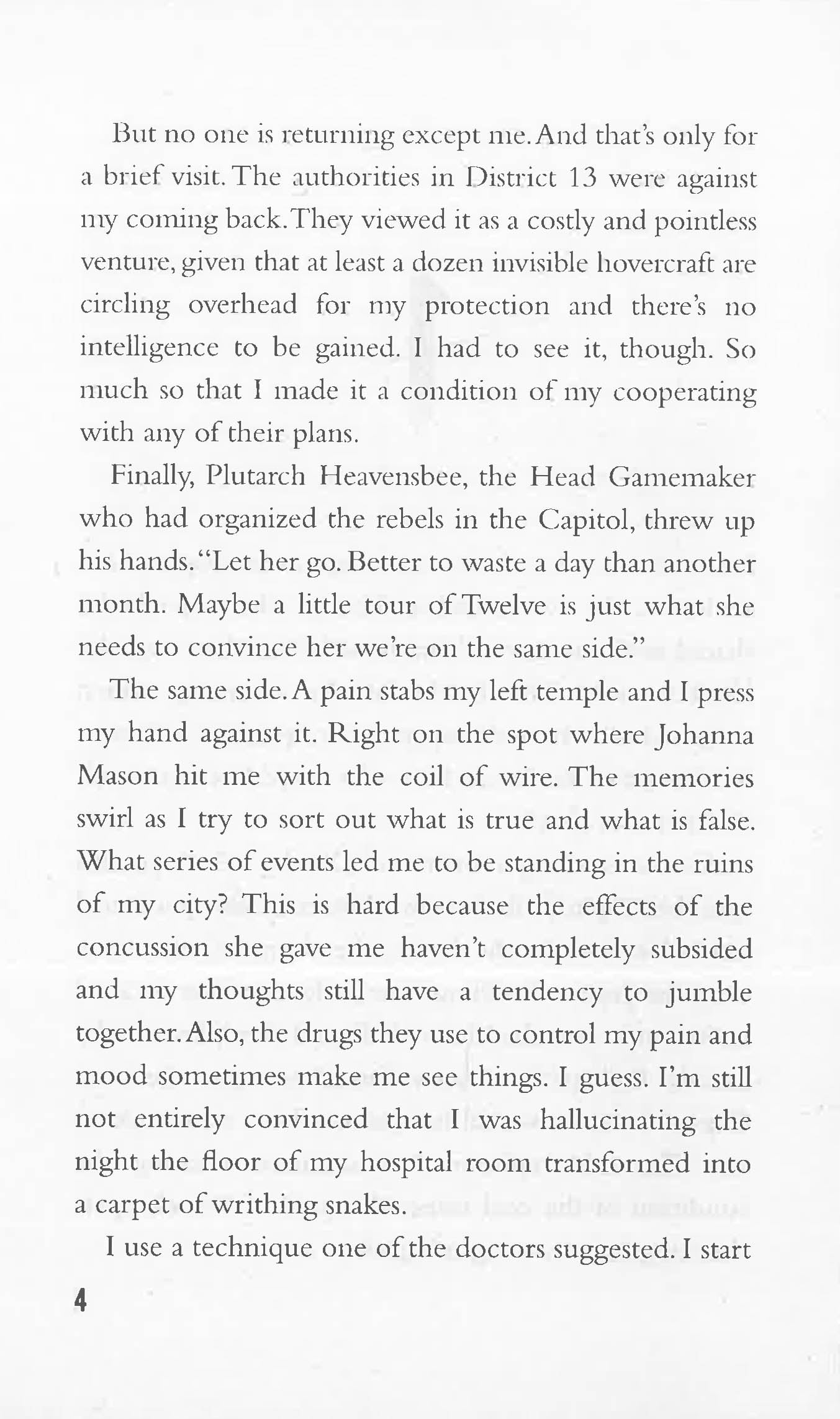 The final book in the ground-breaking HUNGER GAMES trilogy. Against all odds, Katniss Everdeen has survived the Hunger Games twice. But now that she's made it out of the bloody arena alive, she's still not safe. The Capitol is angry. The Capitol wants revenge. Who do they think should pay for the unrest? Katniss. And what's worse, President Snow has made it clear that no one else is safe either. Not Katniss's family, not her friends, not the people of District 12.