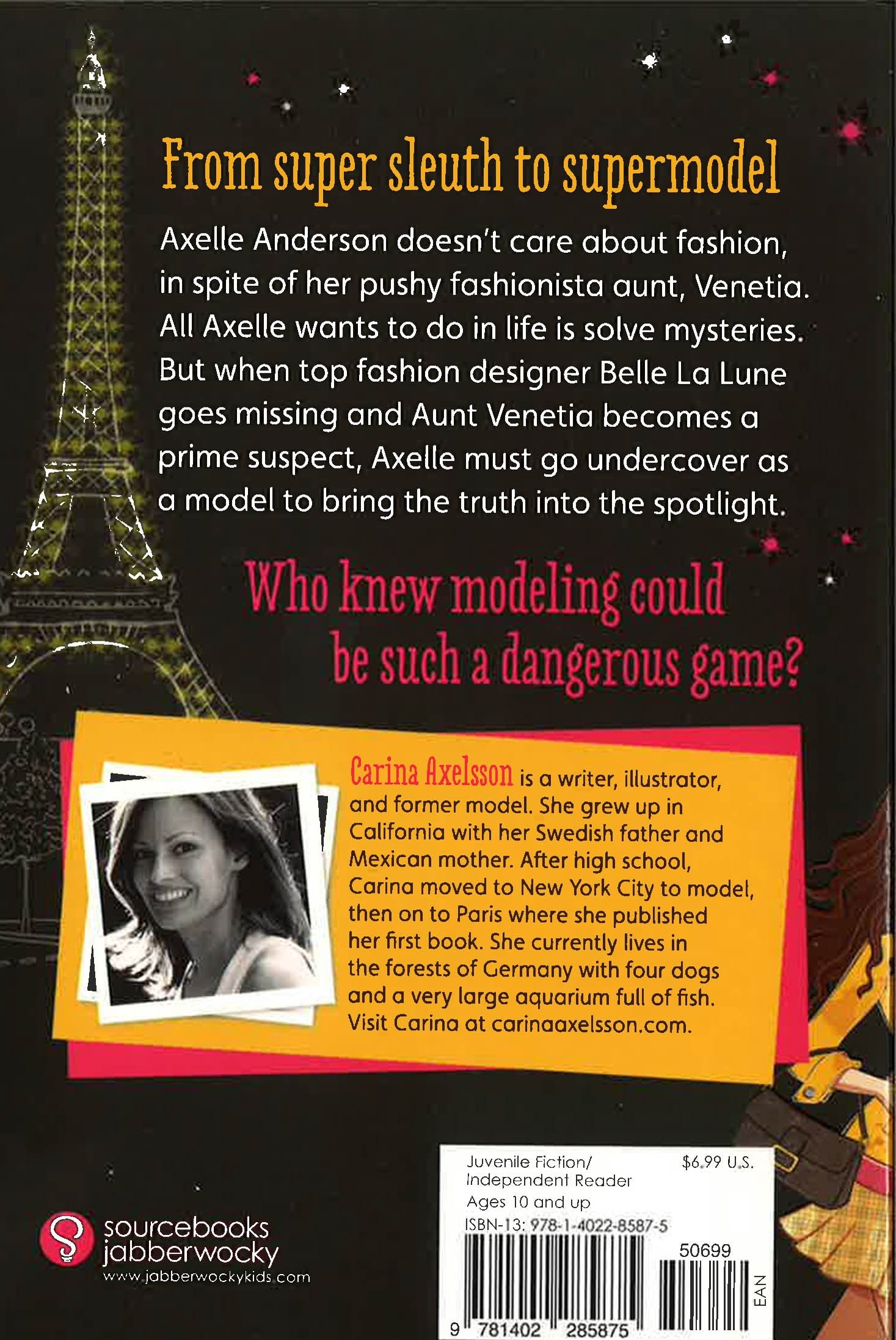 From super sleuth to supermodel Axelle Anderson doesn't care about fashion, in spite of her pushy fashionista aunt, Venetia. All Axelle wants to do in life is solve mysteries. But when top fashion designer Belle La Lune goes missing and Aunt Venetia becomes a prime suspect, Axelle must go undercover as a model to bring the truth into the spotlight. Who knew modeling could be such a dangerous game?