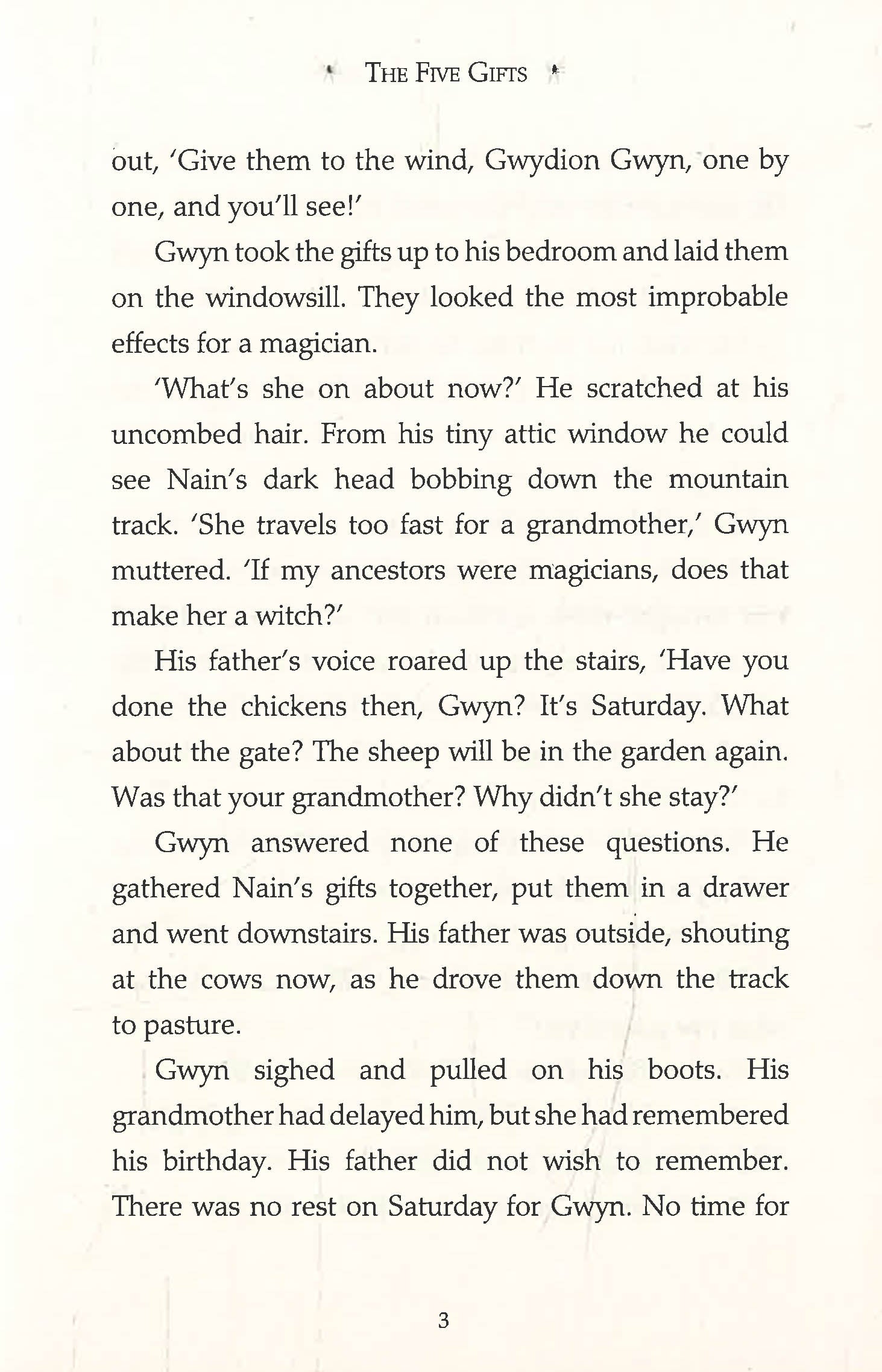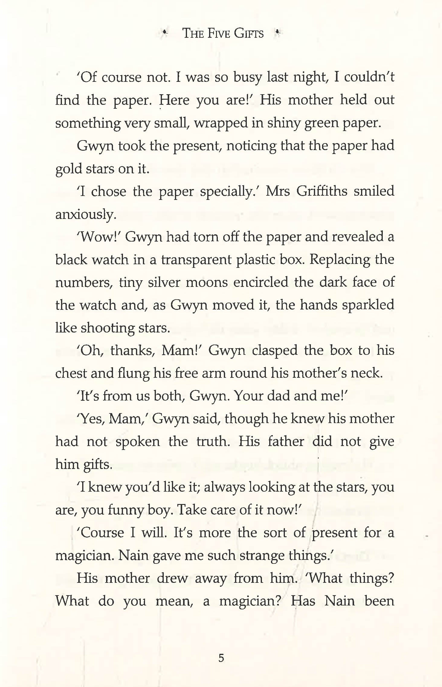 When Gwyn is given five mysterious birthday gifts by his grandmother, they give him access to a new and fantastic universe; a universe that will endow Gwyn with ancient magical powers and may even help him to find his missing sister Bethan.
