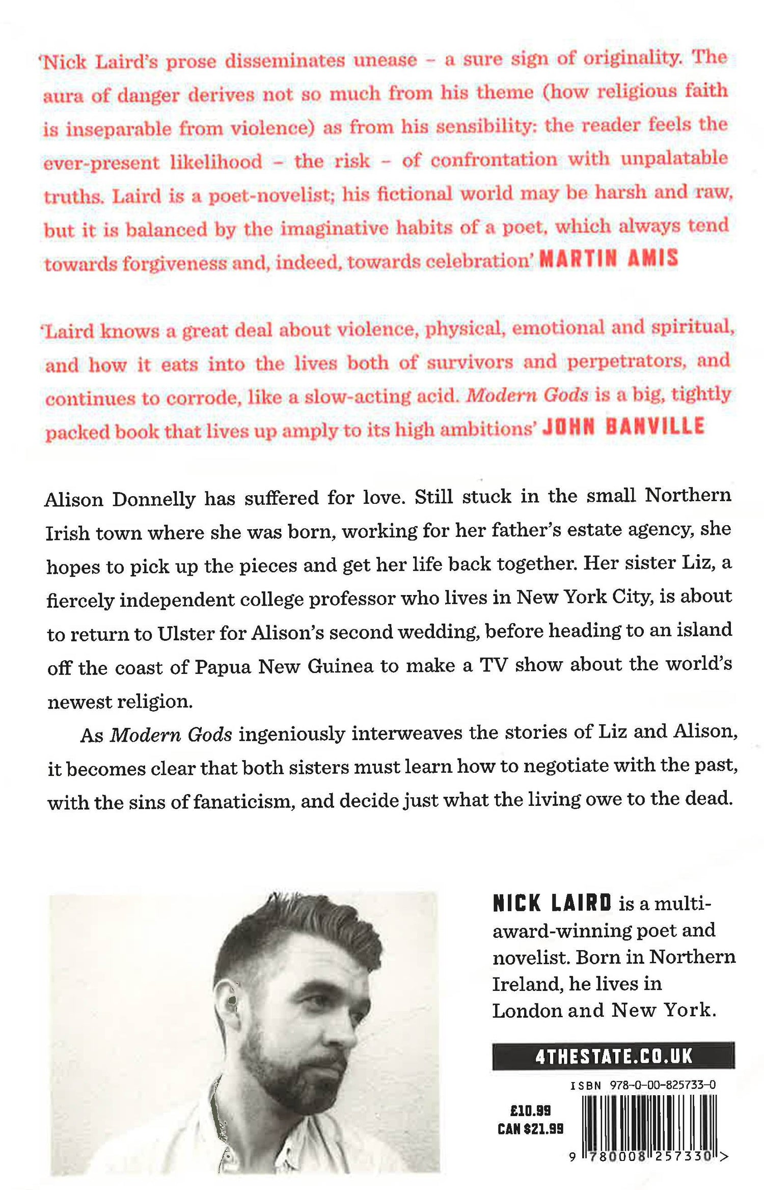 A powerful, thought-provoking novel about two sisters who must reclaim themselves after their lives are dramatically upended from one of our finest authors.Alison Donnelly has suffered for love. Still stuck in the small Northern Irish town where she was born, working for her father’s real estate agency, she hopes to pick up the pieces and get her life back together. Her sister Liz, a fiercely independent college professor who lives in New York City, is about to return to Ulster for Alison’s second wedding, before heading to an island off the coast of Papua New Guinea to make a TV show about the world’s newest religion.Both sisters’ lives are about to be shaken apart. Alison wakes up the day after her wedding to find that her new husband has a past neither of them can escape. In a rainforest on the other side of the planet, Liz finds herself becoming increasingly entangled in the eerie, charged world of Belef, the subject of her show, a charismatic middle-aged woman who is the leader of a cargo cult.As Modern Gods ingeniously interweaves the stories of Liz and Alison, it becomes clear that both sisters must learn how to negotiate with the past, with the sins of fanaticism, and decide just what the living owe to the dead. Laird’s brave, innovative novel charts the intimacies and disappointments of a family trying to hold itself together, and the repercussions of history and faith.