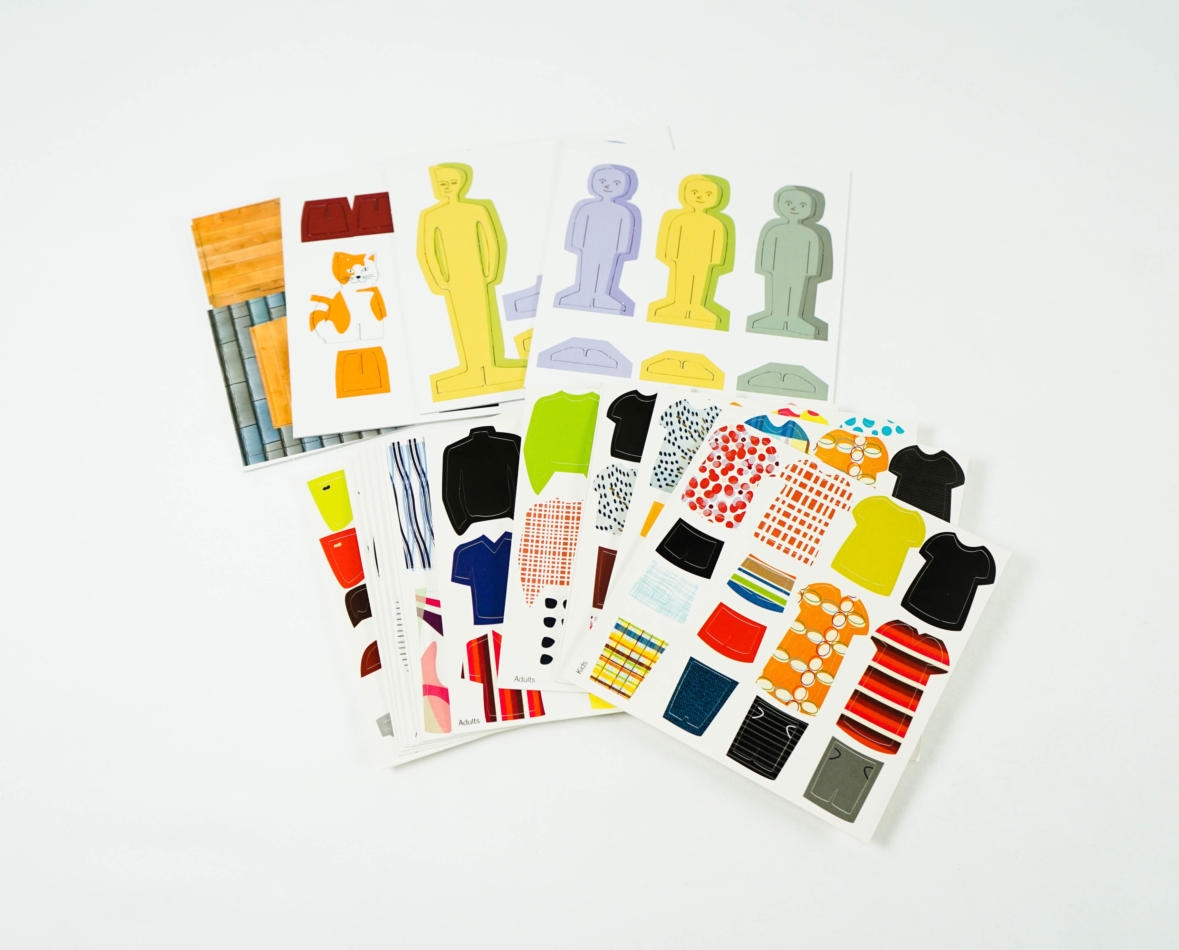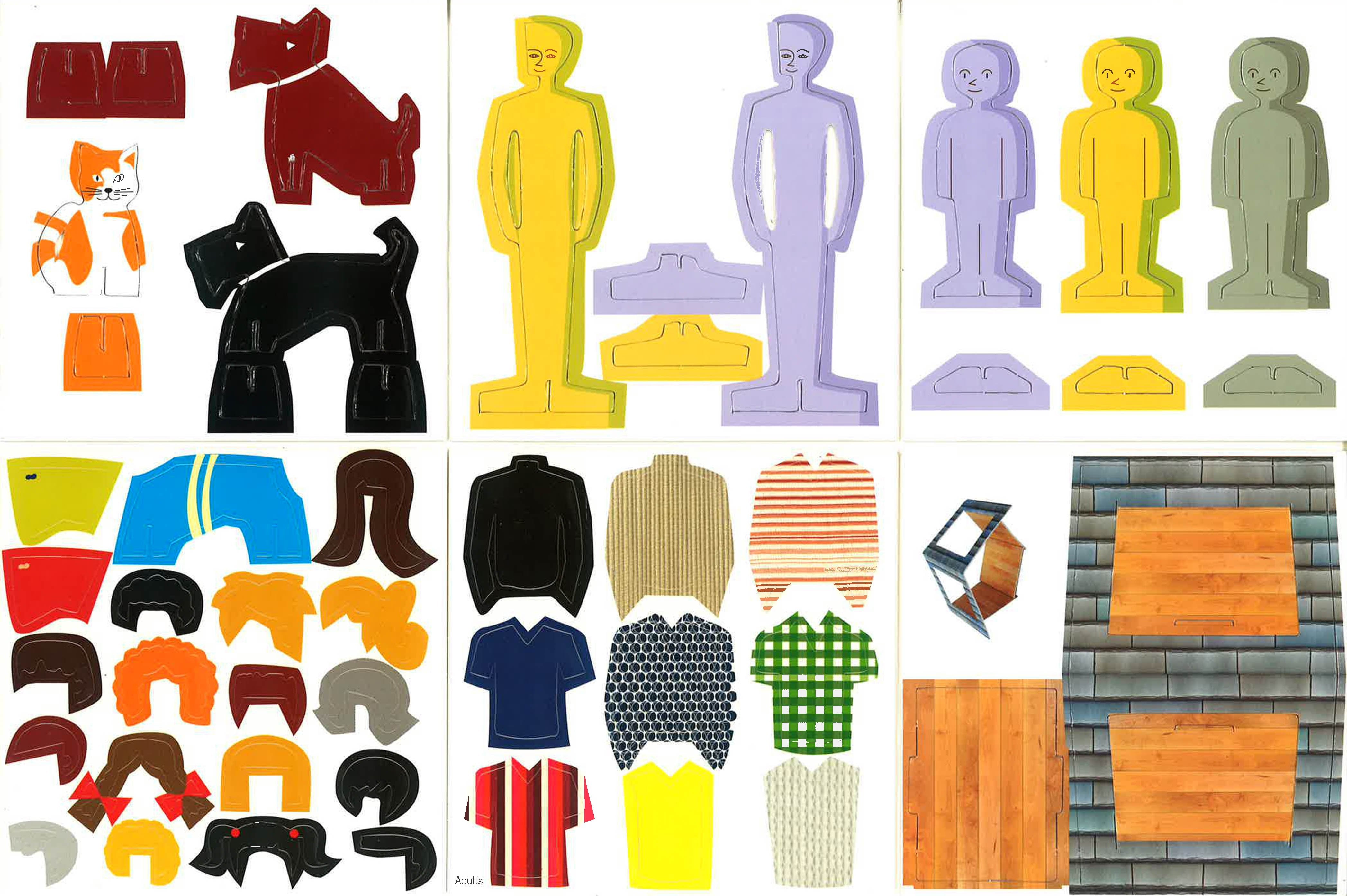 This is a set of mod people figures (includes cat, dog, and dog house) with mix-n-match vinyl cling clothes. This is the perfect add-on to your Mod House.