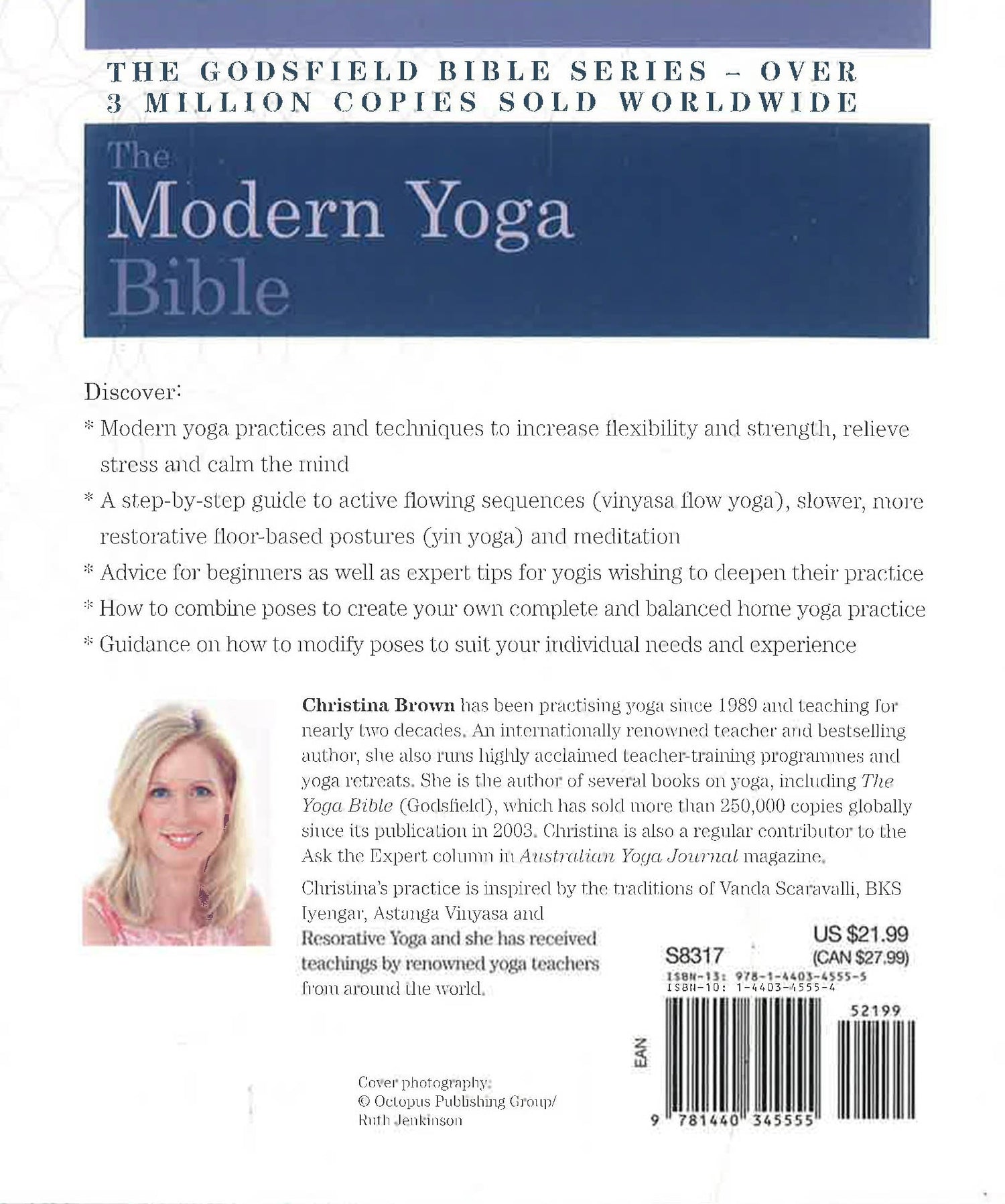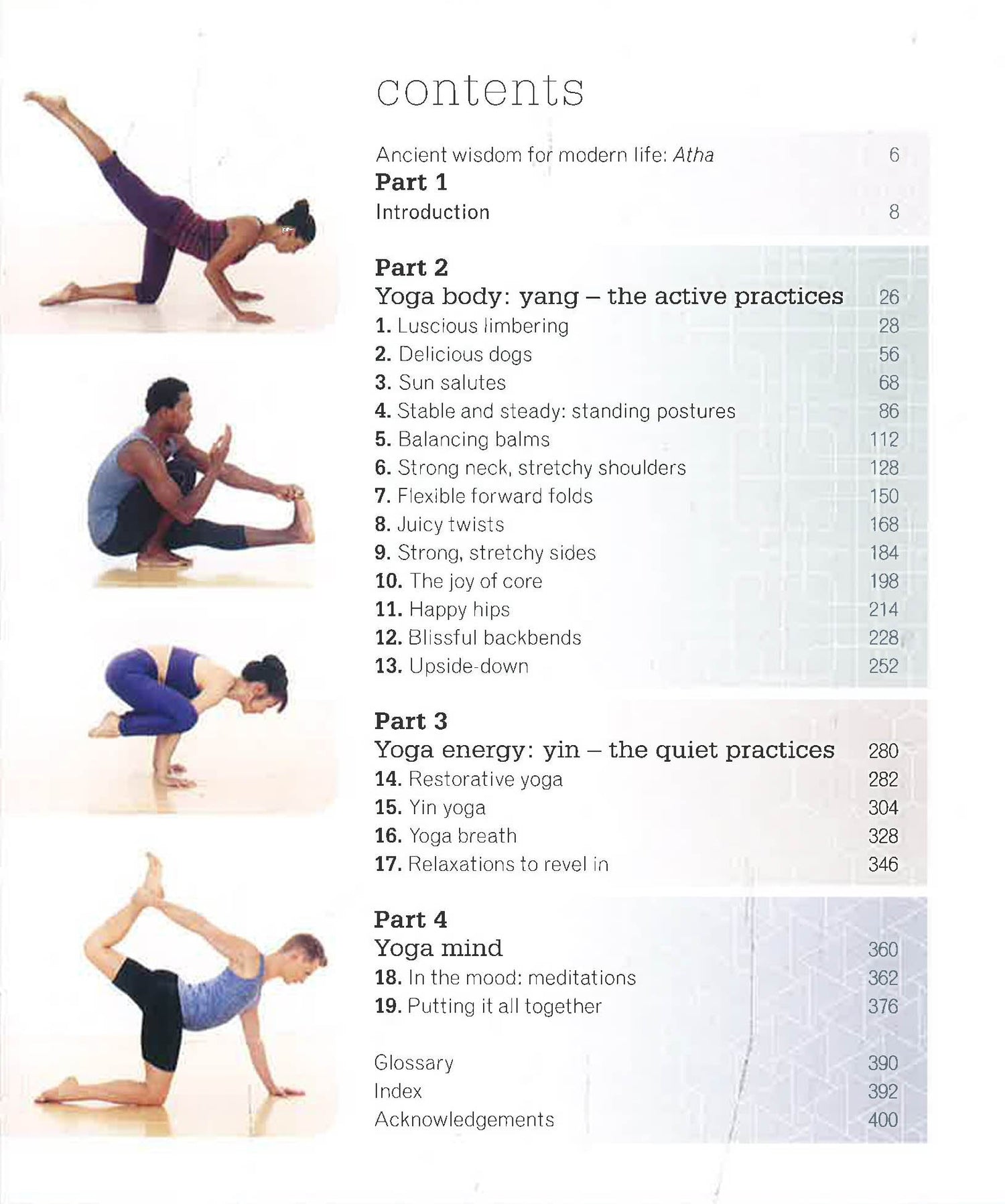 The Modern Yoga Bible details up-to-date yoga practices and techniques that increase flexibility and strength, relieve stress, and calm the mind. Inside you'll find a complete step-by-step guide to active flowing sequences (vinyasa flow yoga), slower, more restorative floor-based postures (yin yoga), and meditation. It's an enormous amount of instruction, including: