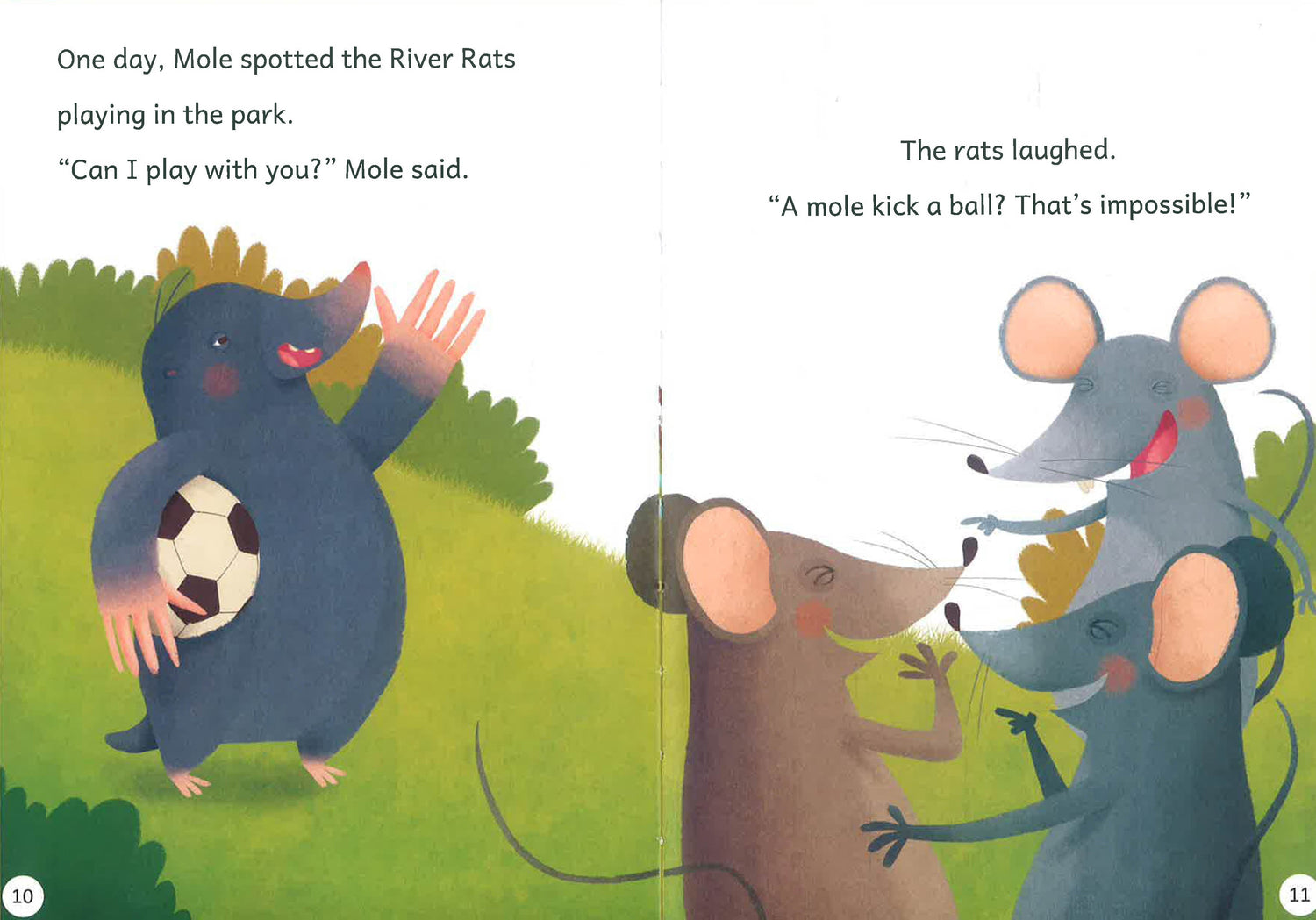 Mole wants to play football, but the rats think it is impossible! How can a mole, who is almost blind, play football! Written by Amanda Brandon, this educational Early Reader book is book band Orange (aimed at 6-7 years, Year 2).The colour grading system is recognised by the Institute of Education which reflects the reading difficulty. The book content, language style, phonics and layout are taken into account to determine this.
