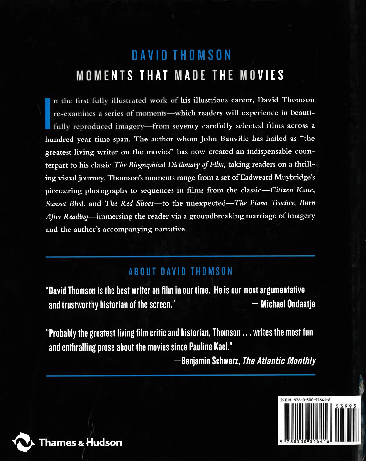 In the first fully illustrated work of his illustrious career, David Thomson re-examines a series of moments - which readers will experience in beautifully reproduced imagery - from seventy-two carefully selected films across a hundred-year time span. Hailed by John Banville as `the greatest living writer on the movies', David Thomson takes readers on an unprecedented visual journey. His moments range from a set of Eadward Muybridge's pioneering photographs to sequences in films from the classic - Citizen Kane , Sunset Boulevard and The Red Shoes - to the unexpected - The Piano Teacher , Burn After Reading - immersing the reader via a groundbreaking marriage of imagery and the author's accompanying narrative. David Thomson's evocative, unflinching prose and profound understanding of what makes film and art form identify him as one of the great film writers of our time, making it likely that Moments that Made the Movies will be widely viewed as an important classic on the subject of international cinema.