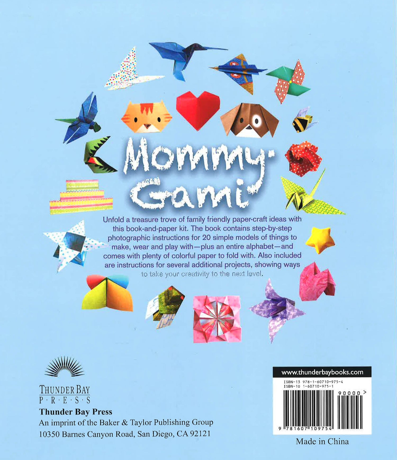 Classic origami projects to enjoy with the whole family. Turn off the television. Unplug the game systems. And get back to basics for an afternoon with some classic origami projects. "Mommy-Gami" has everything readers need to embark on several bright, colorful projects, including the letters of the alphabet, mobiles, pinwheels, gift boxes, pop-up greeting cards, accordion photo frames, party favors baskets, snack containers, fortune tellers, paper airplanes, envelopes for the tooth fairy, flowers, hearts and stars, jewelry, birds, butterflies, and bugs. A great crafting book for the whole family and a fun introduction to basic mathematical concepts, "Mommy-Gami" provides hours of fun with classic paper crafting projects.