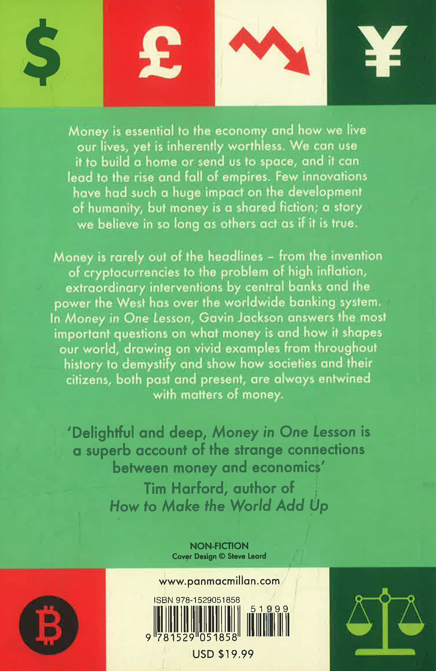 Money is rarely out of the headlines – from the invention of cryptocurrencies to the problem of high inflation, extraordinary interventions by central banks and the power the West has over the worldwide banking system. In Money in One Lesson, Gavin Jackson answers the most important questions on what money is and how it shapes our world, drawing on vivid examples from throughout history to demystify and show how societies and its citizens, both past and present, are always entwined with matters of money.