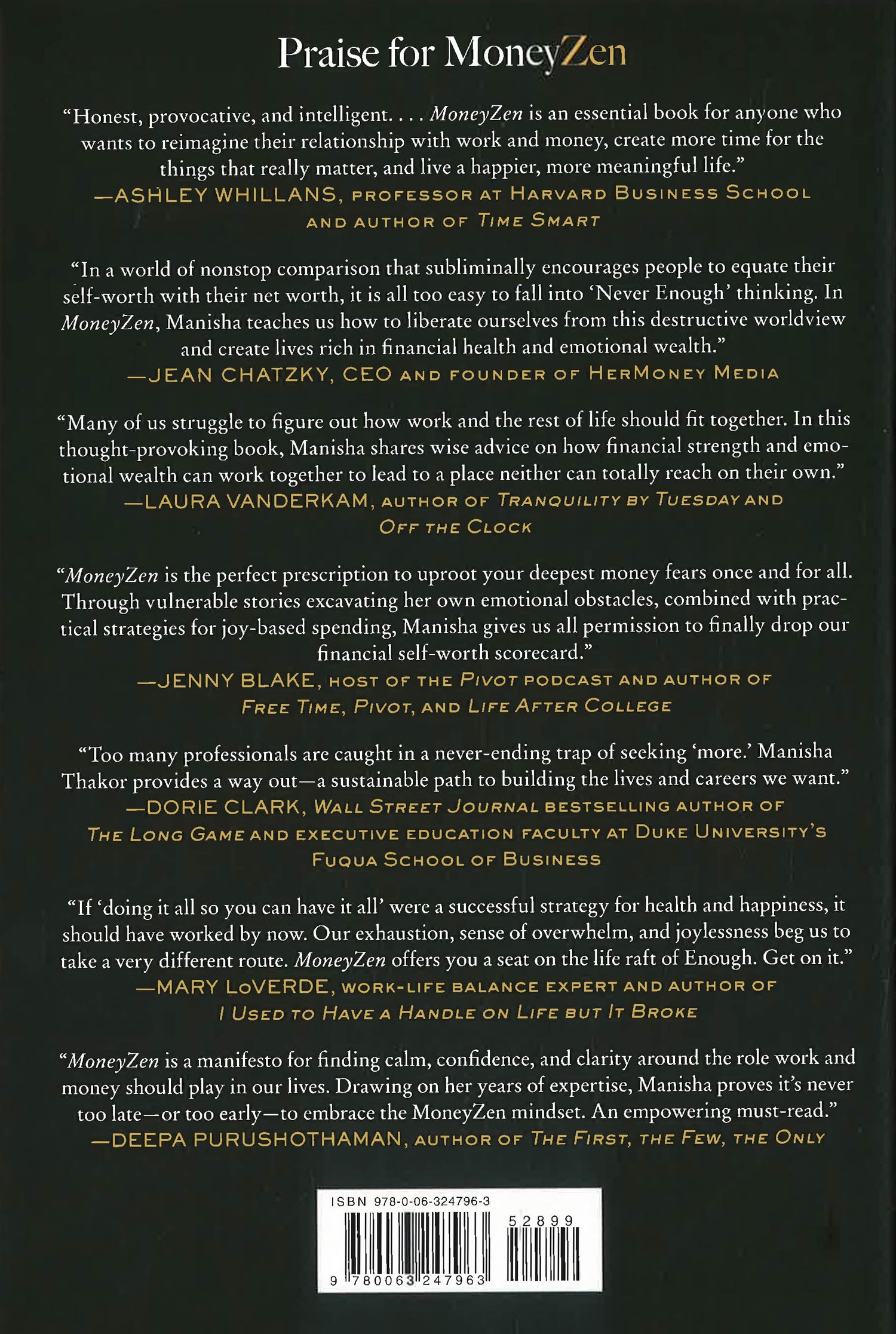 No matter your age, income, or profession, it's all too easy to fall prey to the false belief that the amount of money you earn, or accomplishments you achieve, or praise you receive is just Never Enough. In MoneyZen, financial industry veteran Manisha Thakor candidly shares how she overcame toxic behaviors around work, money, and prestige that had threatened her relationships, her health, and her career, told alongside the inspiring stories of individuals from all walks of life who reveal their own struggles with "Never Enough."