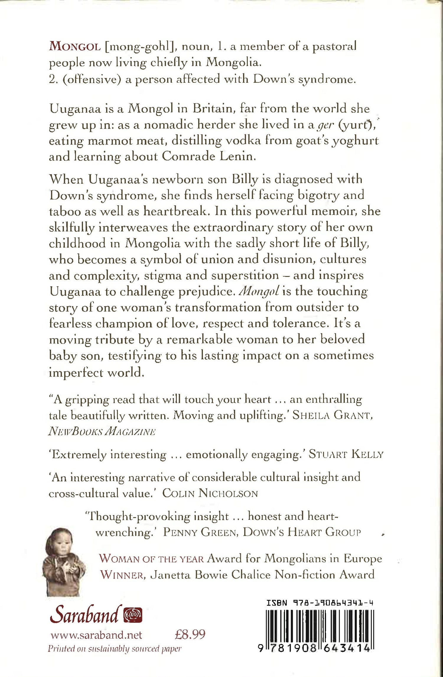 Uuganaa is a Mongol living in Britain. When her son Billy is diagnosed with Down's Syndrome, she has to face all the taboos associated with the term 'mongol'. In this powerful memoir, Uuganaa skilfully interweaves the extraordinary story of her own childhood in Mongolia with the short life of Billy, who inspires Uuganaa to challenge prejudice. Mongol [mong-gohl], noun, 1. a member of a pastoral people now living chiefly in Mongolia. 2. (offensive) a person affected with Down's Syndrome. Uuganaa is a Mongol living in Britain, far from the world she grew up in: as a nomadic herder she lived in a yurt, eating marmot meat, distilling vodka from goat's yoghurt and learning about Comrade Lenin. When her new-born son Billy is diagnosed with Down's Syndrome, she finds herself facing bigotry and taboo as well as heartbreak. In this powerful memoir, Uuganaa skilfully interweaves the extraordinary story of her own childhood in Mongolia with the sadly short life of Billy, who becomes a symbol of union and disunion, cultures and complexity, stigma and superstition - and inspires Uuganaa to challenge prejudice. Mongol is the touching story of one woman's transformation from outsider to fearless champion of love, respect and tolerance. It's a moving tribute by a remarkable woman to her beloved baby son, testifying to his lasting impact on a sometimes imperfect world.