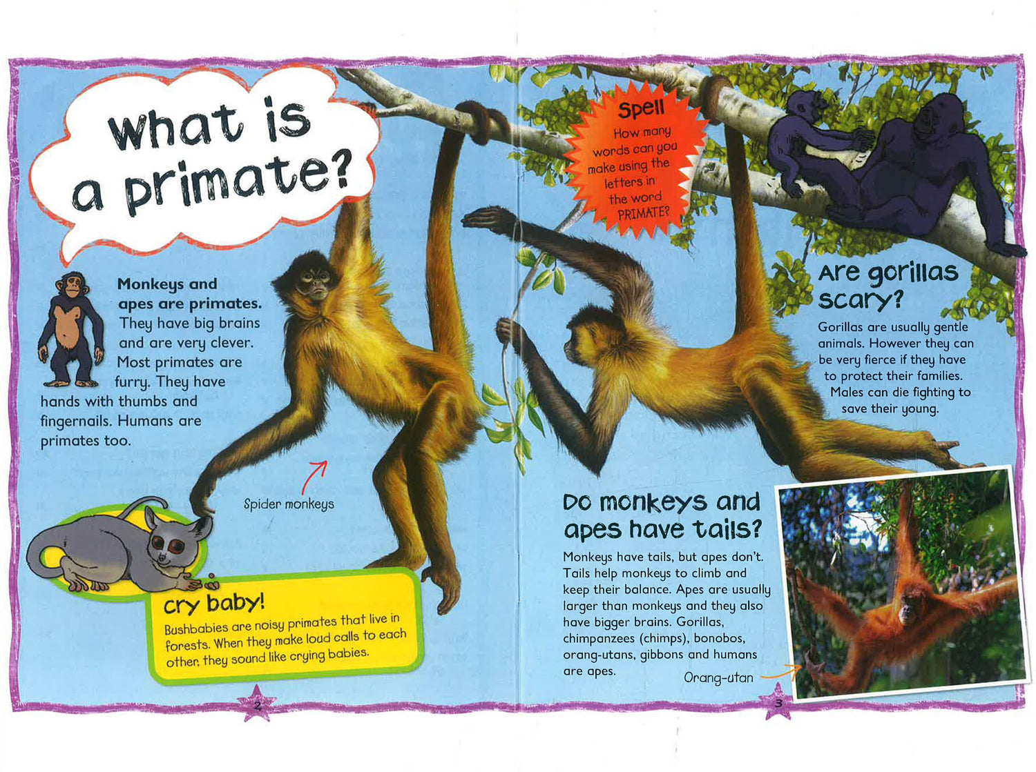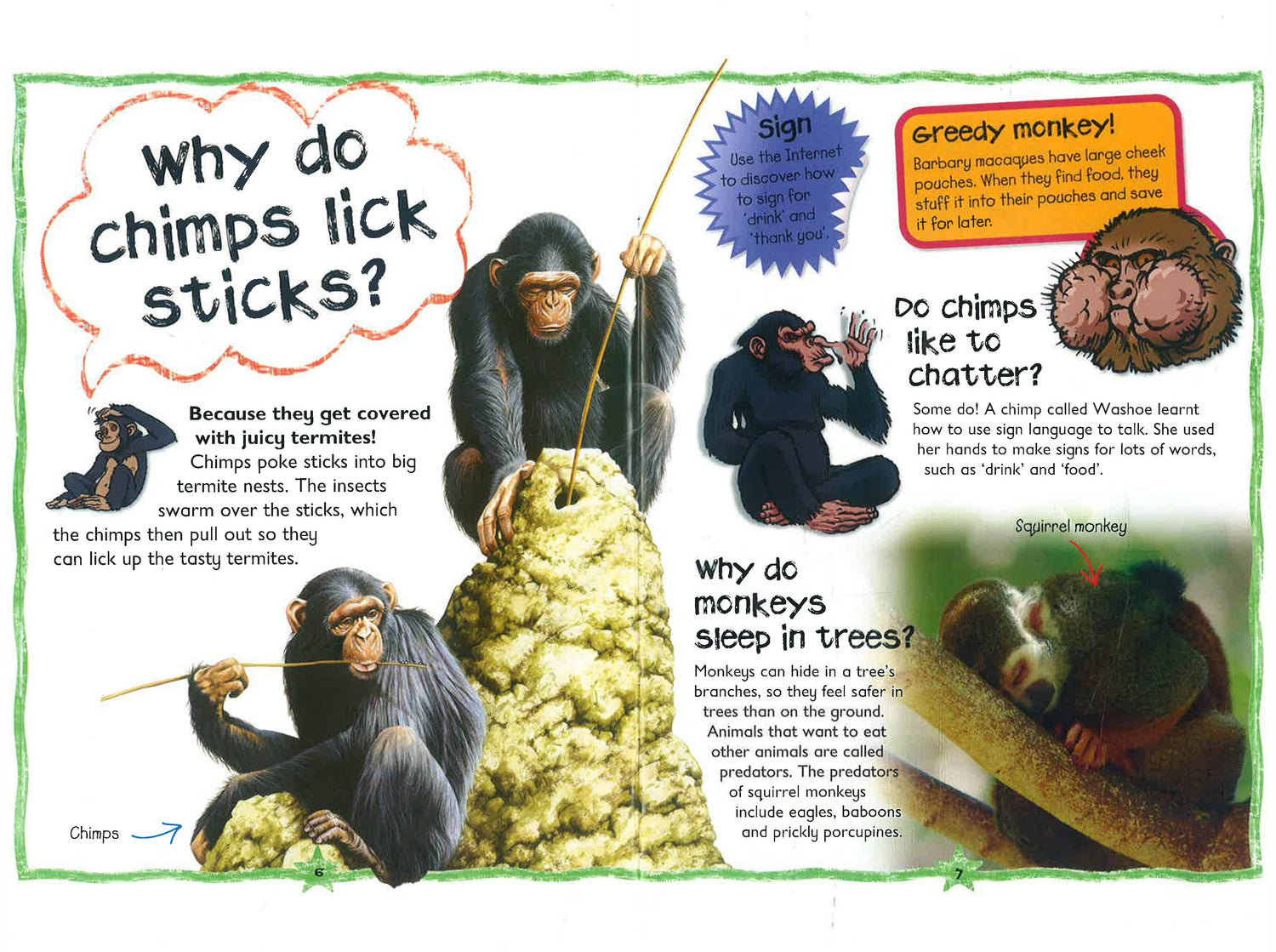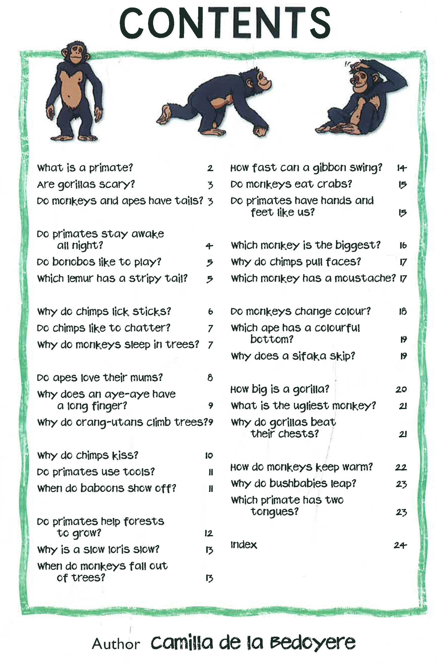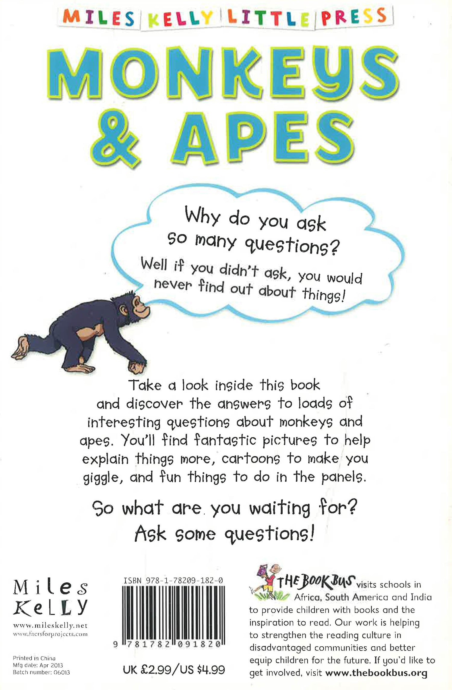 A little book full of big questions about the animal world! Children can discover everything they need to know about monkeys and apes, from why chimps kiss to why primates stay awake all night. This book has more than 30 fun questions, clear answers and fantastic illustrations to help explain things further. It also includes cartoons and extra-special facts to keep kids entertained.